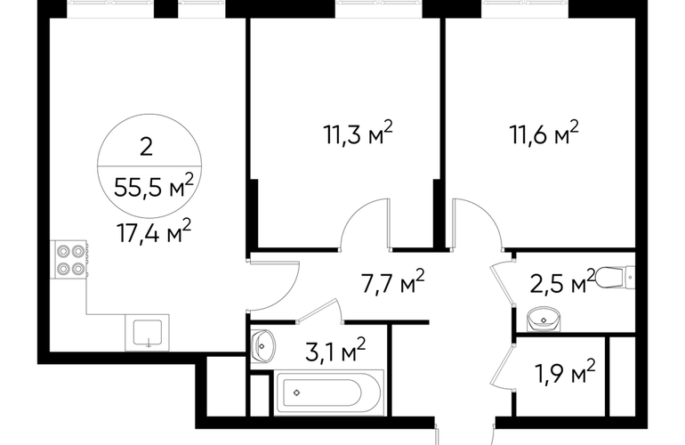 Продается двухкомнатная квартира без отделки в 9 фазе города-парка "Первый Московский". Общая площадь квартиры - 55,5 кв. м, этаж 12 из 19. Срок сдачи - 4 квартал 2026 года. Тип дома - монолитный. ТОЛЬКО ДО 30 АПРЕЛЯ выгодные условия на приобретение квартиры в ипотеку или рассрочку. Звоните - и мы подберем оптимальное предложение под ваш запрос! Корпус состоит из 2х секций, без отделки. Город-парк "Первый Московский" расположен всего в 7 км по Киевскому шоссе от МКАД на территории Новой Москвы. Из города-парка прямой выезд на Киевское шоссе и трассу Солнцево-Бутово-Варшавское шоссе. ТРАНСПОРТНАЯ ДОСТУПНОСТЬ: - 5 мин. на личном автомобиле или 10 мин. на автобусе №189, 147, 193 до станции метро «Филатов Луг» - 5 мин. на личном автомобиле или 12 мин. на автобусе №863 до станции метро «Саларьево» - 6 мин. на личном автомобиле или 15 мин. на автобусе №333 до станции метро «Рассказовка» РАЗВИТАЯ ИНФРАСТРУКТУРА В ОКРУЖЕНИИ: - общеобразовательная школа №2120 корпуса д1, д7, ш1-ш5 - детский сад №2120 корпуса д2, д9 - школа искусств - городская больница, детская поликлиника, филиал №5 - подстанция скорой помощи №58 и пожарно-спасательный центр №313 - отдел полиции, отдел ГИБДД - торговые центры “Столица” и “Новомосковский” - стадион, каток, бассейн - кафе, продуктовые магазины, аптеки, фитнес центры, салоны красоты и пр. БЛАГОУСТРОЙСТВО: - детская площадка для малышей и детей до 12 лет - места отдыха для родителей в непосредственной близости - озеленение территории с учетом зонирования - максимальная близость корпуса к пару Филатов луг ОСОБЕННОСТИ АРХИТЕКТУРЫ: - безбарьерные входные группы - колясочные в каждой входной группе - коммерческие помещения на 1 этаже в двух секциях - кладовые помещения расположены на жилых этажах и на -1 этаже - в каждой секции корпуса по 3 лифта: 2 пассажирских, 1 грузовой - на фасадах предусмотрены корзины для установки внешних блоков кондиционеров - видеонаблюдение установленное в холлах первых этажей, у подъездов и прилегающей территории АВТОРСКИЙ ДИЗАЙН: Входные группы выполнены по авторскому дизайну, оснащены системой «тёплый пол». В каждой входной группе будет располагаться комфортабельная зона ожидания, почтовые ящики с ячейкой для спама, колясочная, акцентные пуфы и столик.О застройщике