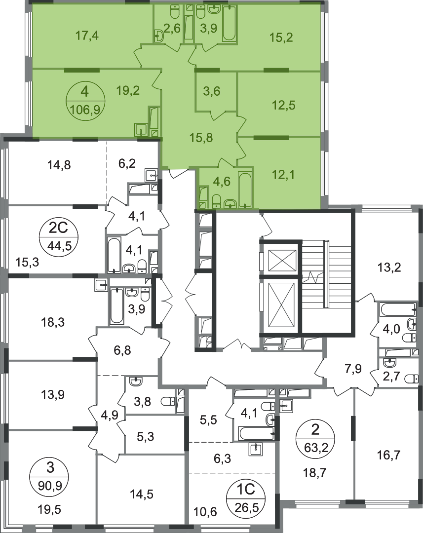 Продается четырехкомнатная квартира в городе-парке "Переделкино Ближнее". Общая площадь квартиры - 106,9 кв. м, этаж 13 из 17. Срок сдачи - 3 квартал 2028 года. Тип дома - монолитный. Корпус расположен в 13 фазе строительства и состоит из 6 секций с переменной этажностью 12-17 этажей. Около 13 фазы запланировано строительство многоуровневого паркинга на 300 м/мест. 13 фаза имеет уникальное расположение и находится непосредственно на берегу Федосьинского пруда, который является сердцем города-парка «Переделкино Ближнее». Город-парк "Переделкино Ближнее" расположен в 8 км от МКАД по Боровскому шоссе. ТРАНСПОРТНАЯ ДОСТУПНОСТЬ: - 15 минут пешком до станции МЦД-4 «Мичуринец» - 25 минут пешком до станции метро «Рассказовка» Солнцевской линии - 30 минут до центра Москвы - 2026 г. - открытие трассы Солнцево-Бутово-Варшавское шоссе РАЗВИТАЯ СОЦИАЛЬНАЯ ИНФРАСТРУКТУРА: - 7 детских садов, 3 школы - банки, продуктовые магазины, аптеки, фитнес центры, салоны красоты и пр БЛАГОУСТРОЙСТВО: - дворы без машин - игровые зоны и развивающие детские площадки - зоны для созерцательного и медитативного отдыха - зоны для занятий спортом ОСОБЕННОСТИ АРХИТЕКТУРЫ: - высокие потолки от 3,03 м - безбарьерные входные группы - колясочные в каждой входной группе - кладовые помещения расположены на -1 этаже каждой секции - в каждой секции 2 лифта: 1 пассажирский, 1 грузовой - на фасаде предусмотрены корзины для установки кондиционеров АВТОРСКИЙ ДИЗАЙН: Входные группы выполнены по авторскому дизайну, благодаря панорамному остеклению наполнены естественным светом. В каждой входной группе будет располагаться комфортабельная зона ожидания с возможностью зарядить электронные устройства, почтовые ящики, колясочная, акцентные пуфы и столик.О застройщике