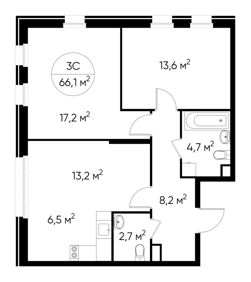Продается трехкомнатная квартира в городе-парке "Переделкино Ближнее". Общая площадь квартиры - 66,1 кв. м, этаж 1 из 17. Срок сдачи - 1 квартал 2028 года. Тип дома - монолитный. Корпус расположен в 13 фазе строительства и состоит из 8 секций с переменной этажностью 12-17 этажей. Все секции без отделки. Около 13 фазы запланировано строительство многоуровневого паркинга на 300 м/мест. 13 фаза имеет уникальное расположение и находится непосредственно на берегу Федосьинского пруда, который является сердцем города-парка «Переделкино Ближнее». Город-парк "Переделкино Ближнее" расположен в 8 км от МКАД по Боровскому шоссе. ТРАНСПОРТНАЯ ДОСТУПНОСТЬ: - 15 минут пешком до станции МЦД-4 «Мичуринец» - 25 минут пешком до станции метро «Рассказовка» Солнцевской линии - 30 минут до центра Москвы - 2026 г. - открытие трассы Солнцево-Бутово-Варшавское шоссе РАЗВИТАЯ СОЦИАЛЬНАЯ ИНФРАСТРУКТУРА: - 7 детских садов, 3 школы - банки, продуктовые магазины, аптеки, фитнес центры, салоны красоты и пр БЛАГОУСТРОЙСТВО: - дворы без машин - игровые зоны и развивающие детские площадки - зоны для созерцательного и медитативного отдыха - зоны для занятий спортом ОСОБЕННОСТИ АРХИТЕКТУРЫ: - высокие потолки от 3,03 м - безбарьерные входные группы - колясочные в каждой входной группе - кладовые помещения расположены на -1 этаже каждой секции - в каждой секции 2 лифта: 1 пассажирский, 1 грузовой - на фасаде предусмотрены корзины для установки кондиционеров АВТОРСКИЙ ДИЗАЙН: Входные группы выполнены по авторскому дизайну, благодаря панорамному остеклению наполнены естественным светом. В каждой входной группе будет располагаться комфортабельная зона ожидания с возможностью зарядить электронные устройства, почтовые ящики, колясочная, акцентные пуфы и столик.О застройщике
