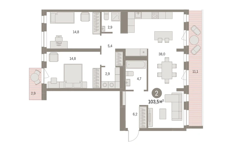 Квартира с кухней-гостиной и двумя спальнями в «Первом квартале». Особенности планировки: балкон, вид во двор, второй санузел, квартира на две стороны, окна в пол, окна на две стороны, открытый балкон, постирочная, с ремонтом, терраса. ОБЪЯВЛЕНИЕ ОТ ЗАСТРОЙЩИКА. Покупка квартиры защищена банком. Квартиру можно купить онлайн. ЖК «Первый квартал» расположен в городе Видное Московской области. Это шесть домов переменной этажности от 5 до 14 этажей с закрытыми дворами без машин, детскими и спортивными площадками. Проект застройщика Брусника находится в Ленинском районе в 6 км от МКАД, рядом с Ермолинским парком и рекой Купелинка. До аэропорта Домодедово около получаса езды на автомобиле. В районе уже сформированная инфраструктура: четыре детских сада, две школы, торговые центры, продуктовые магазины, остановки общественного транспорта. Рядом с ЖК «Первый квартал» находится конечная остановка маршрутных такси. От неё можно добраться до четырех станций метро — «Домодедовская», «Аннино», «Красногвардейская», и железнодорожной станции «Расторгуево» (в будущем МЦД5). Отдельный выезд на М4 Дон. В жилом районе уже построен собственный детский сад. В 2024 году завершится строительство школы на 1650 учеников. Вблизи «Первого квартала» — два развитых жилых района: микрорайон «Купелинка», ЖК «Эко Видное», ЖК «Видный». 2х-комнатная квартира в ЖК «Первый квартал» в Видном — это квартира с объединённой кухней-гостиной и двумя спальнями. Двухкомнатная может быть укомплектована тёплой лоджий, где удобно разместить рабочее место. Есть варианты квартир с открытым французским балконом и террасами. В квартирах также спроектированы дополнительные помещения — ниши под хранение, постирочные, второй санузел. Площадь 2х-комнатных квартир в Видном начинается от 53 кв. метров. На сдаче в 2-комнатных квартирах в Видном выполнена отделка под чистовую отделку. Установлена надёжная сейф-дверь, пластиковые окна, приборы учёта, радиаторы, розетки и выключатели, выполнена разводка отопления и электрики. Стены оштукатурены. Пол готов к финишному покрытию — ламинату, плитке, линолеуму. Купить 2х квартиру в ЖК «Первый квартал» в Видном можно с помощью программ покупки от застройщика «Брусника»: - бесплатный юридический сервис по оформлению квартиры от специалистов застройщика; - ипотека со сниженной ставкой по госпрограмме; - 2-комнатные квартиры в рассрочку без процентов от застройщика ЖК «Первый квартал» в 6 км от МКАД»; - обмен квартиры в Видном, Москве или Московской области на новую квартиру от застройщика «Брусника»; - возможность заказать отделку по выгодной стоимости; - выкупим квартиру с ипотекой в счет первого взноса за новую квартиру в «Первом квартале» от Брусники. Получить одобрение ипотеки или рассрочку, а также осуществить обмен квартиры можно онлайн. Запишитесь на онлайн презентацию по телефону или на сайте. № квартиры в нашей базе: ПК5-ГП5-8-8.6.3.О застройщике