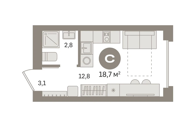 Студия в «Первом квартале». Особенности планировки: предчистовая отделка. № квартиры в нашей базе: МТК01-Ж5.2.4.О застройщике