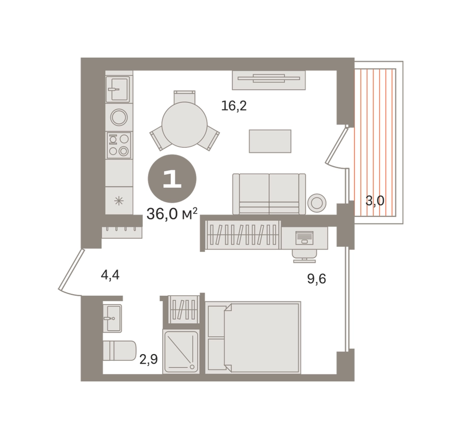Квартира с кухней-гостиной и одной спальней в «Первом квартале». Особенности планировки: балкон, вид во двор, предчистовая отделка. № квартиры в нашей базе: МТК04-Ж1.2.7.О застройщике
