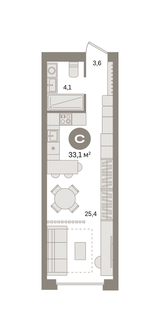 Студия в «Первом квартале». Особенности планировки: вид во двор, предчистовая отделка. № квартиры в нашей базе: МТК07-Ж1.3.7.О застройщике