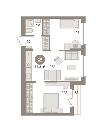 Продаётся с кладовой. Квартира с кухней-гостиной и двумя спальнями в «Первом квартале». Особенности планировки: предчистовая отделка, разнесённые спальни, терраса. № квартиры в нашей базе: МТК01-Ж5.8.3.О застройщике