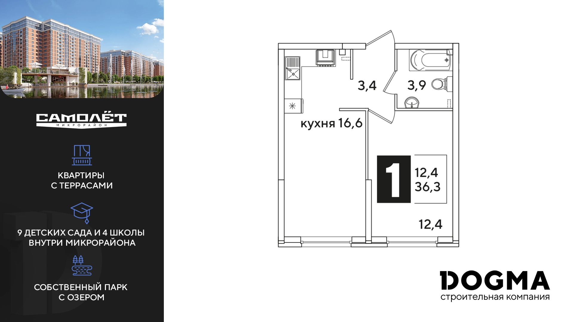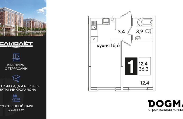 1-ком, 36.3 кв.м., 1/16эт.