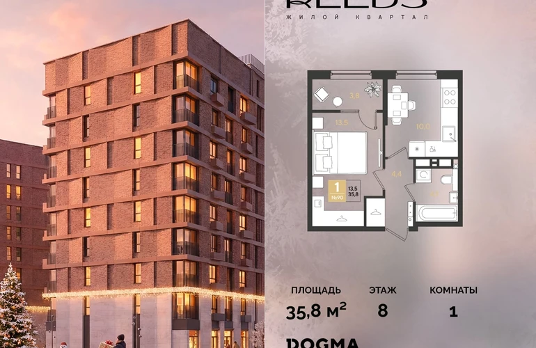 В продаже 1-комнатная квартира от застройщика DOGMA!ЖК REEDS, г. Краснодар, Литер 6
