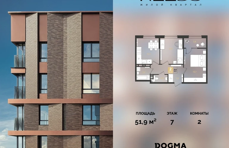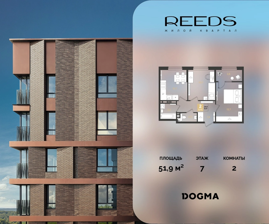В продаже 2-комнатная квартира от застройщика DOGMA!ЖК REEDS, г. Краснодар, Литер 6