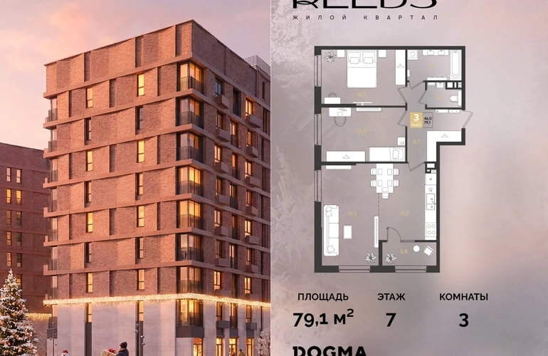 В продаже 3-комнатная квартира от застройщика DOGMA!ЖК REEDS, г. Краснодар, Литер 6