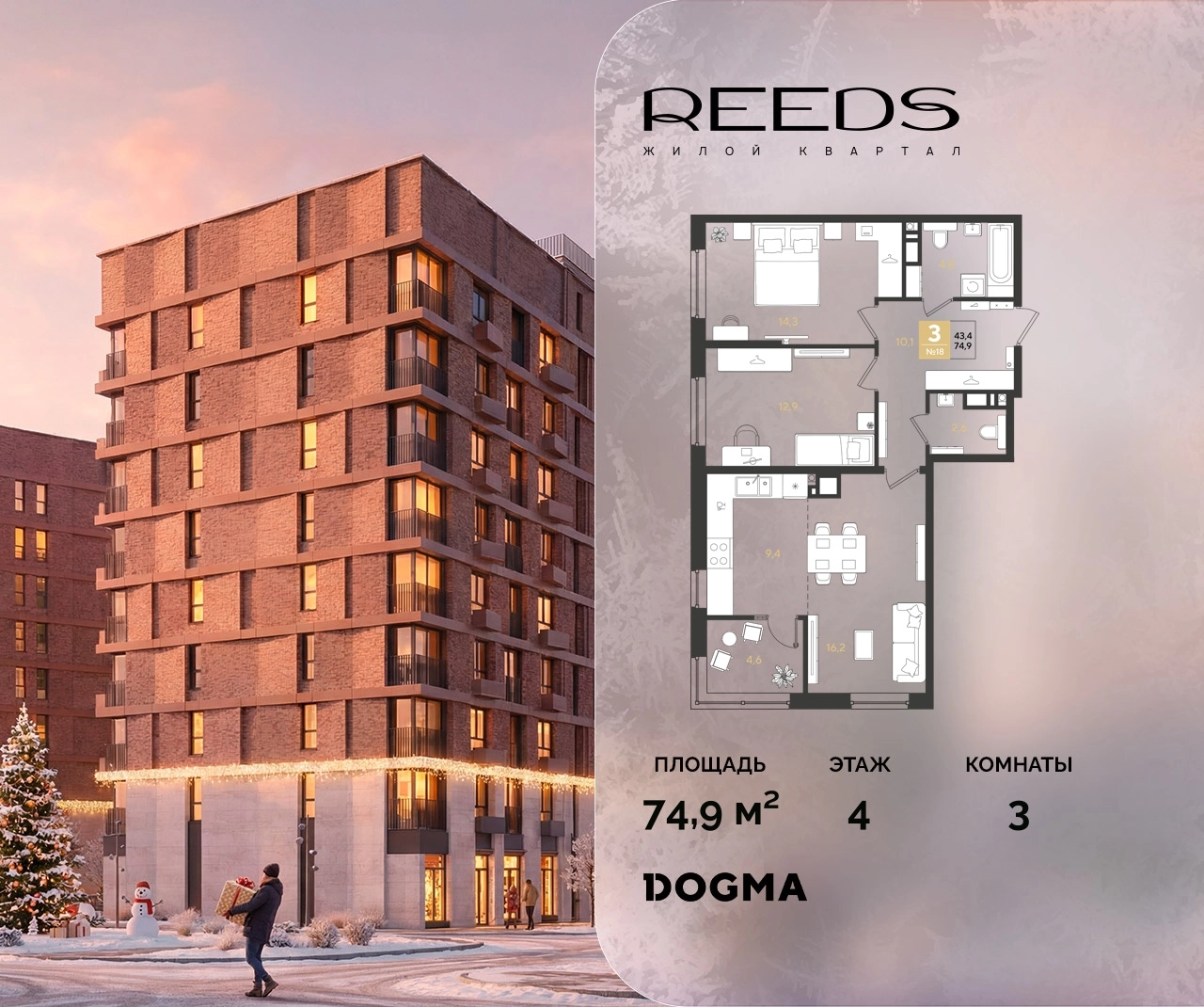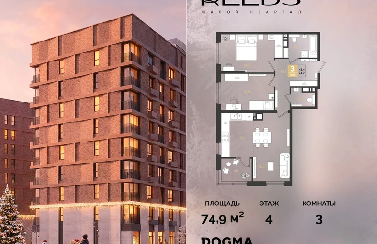 В продаже 3-комнатная квартира от застройщика DOGMA!ЖК REEDS, г. Краснодар, Литер 5