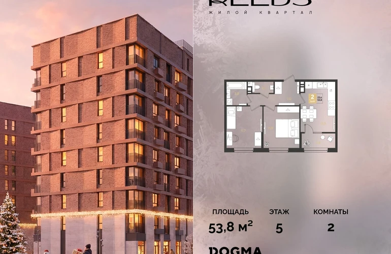 В продаже 2-комнатная квартира от застройщика DOGMA!ЖК REEDS, г. Краснодар, Литер 15