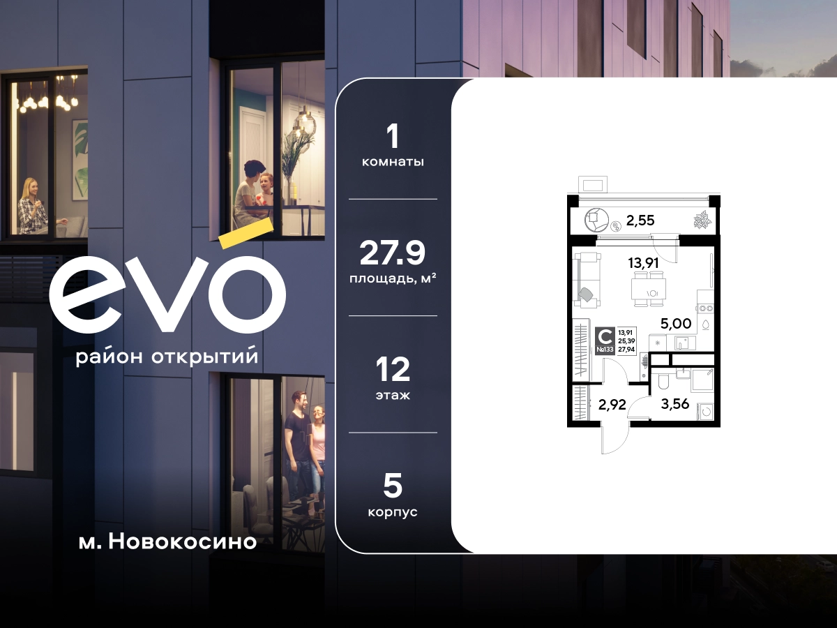 Продается студия 27.94 кв.м. в жилом комплексе ЭВО на 12 этаже по адресу: Московская область, г. Реутов, ул. Комсомольская. Скидка 15% на выделенный пул двухкомнатных и трёхкомнатных квартир с готовностью в 2026 году!* ЭВО - проект комфорт-класса от девелопера Dogma. Каждый житель сможет открыть для себя максимум возможностей. Совершенствоваться во всех направлениях: физическом, эмоциональном и материальном. В ЭВО можно открыть для себя новые виды спорта, найти единомышленников по хобби, партнеров по бизнесу, развивать в детях новые грани, наслаждаться природой и лаконичной архитектурой. Более 6 га благоустройства в первой очереди! - Зеленый двор без машин, кленовая аллея для прогулок. - Нейродинамические площадки для детей разных возрастов. - Workout зона, столы для пинг-понга, места для занятия йогой. велодорожки и дорожки для скандинавской ходьбы. - Детский сад на 180 мест и школа на 750 мест. - Кроссбукинг. - Лобби с зоной ожидания, колясочной и лапомойкой. - Магазины и кафе на первых этажах. БЕЗОПАСНОСТЬ - Закрытая территория. - Круглосуточное видеонаблюдение. - Контроль доступа. РАСПОЛОЖЕНИЕ Пешком - 7 минут до станции Реутов. - 20 минут до метро Новокосино. На машине - 4 минуты до МКАД. - 6 минут до шоссе Энтузиастов. - 9 минут до Носовихинское шоссе. - 13 минут до МСД (Московский скоростной диаметр). СОЦИАЛЬНАЯ ИНФРАСТРУКТУРА В первой очереди предусмотрено строительство детского сада на 180 мест и школы на 750 учащихся. В 10 минутах ходьбы от ЭВО находится детский технопарк "Изобретариум", в котором более 60 научных секции: от IT до промышленного дизайна. Для творческих ребят рядом есть художественная и музыкальные школы, хоровая студия. ОКРУЖЕНИЕ - Реутовский центральный парк, Александровский сквер, Фабричный пруд. - ТЦ "Экватор", ТК "Шоколад". - Спортивный комплекс "Старт", Ледовый комплекс "Реутов Арена". - Музей-усадьба "Кусково". *Акция действует до 15.02.2026. Подробности уточняйте по телефону.О застройщике