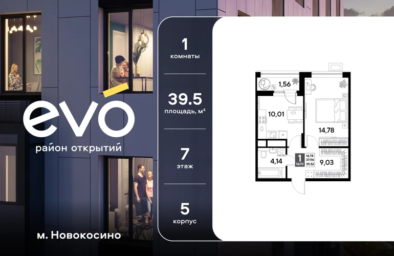 Продается однокомнатная квартира 39.52 кв.м. в жилом комплексе ЭВО на 7 этаже по адресу: Московская область, г. Реутов, ул. Комсомольская. Скидка 15% на выделенный пул двухкомнатных и трёхкомнатных квартир с готовностью в 2026 году!* ЭВО - проект комфорт-класса от девелопера Dogma. Каждый житель сможет открыть для себя максимум возможностей. Совершенствоваться во всех направлениях: физическом, эмоциональном и материальном. В ЭВО можно открыть для себя новые виды спорта, найти единомышленников по хобби, партнеров по бизнесу, развивать в детях новые грани, наслаждаться природой и лаконичной архитектурой. Более 6 га благоустройства в первой очереди! - Зеленый двор без машин, кленовая аллея для прогулок. - Нейродинамические площадки для детей разных возрастов. - Workout зона, столы для пинг-понга, места для занятия йогой. велодорожки и дорожки для скандинавской ходьбы. - Детский сад на 180 мест и школа на 750 мест. - Кроссбукинг. - Лобби с зоной ожидания, колясочной и лапомойкой. - Магазины и кафе на первых этажах. БЕЗОПАСНОСТЬ - Закрытая территория. - Круглосуточное видеонаблюдение. - Контроль доступа. РАСПОЛОЖЕНИЕ Пешком - 7 минут до станции Реутов. - 20 минут до метро Новокосино. На машине - 4 минуты до МКАД. - 6 минут до шоссе Энтузиастов. - 9 минут до Носовихинское шоссе. - 13 минут до МСД (Московский скоростной диаметр). СОЦИАЛЬНАЯ ИНФРАСТРУКТУРА В первой очереди предусмотрено строительство детского сада на 180 мест и школы на 750 учащихся. В 10 минутах ходьбы от ЭВО находится детский технопарк "Изобретариум", в котором более 60 научных секции: от IT до промышленного дизайна. Для творческих ребят рядом есть художественная и музыкальные школы, хоровая студия. ОКРУЖЕНИЕ - Реутовский центральный парк, Александровский сквер, Фабричный пруд. - ТЦ "Экватор", ТК "Шоколад". - Спортивный комплекс "Старт", Ледовый комплекс "Реутов Арена". - Музей-усадьба "Кусково". *Акция действует до 15.02.2026. Подробности уточняйте по телефону.О застройщике