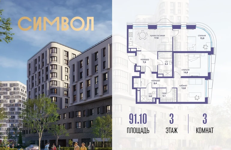 Продается 3-комнатная квартира от застройщика: общая площадь 91.10 м², жилая 42.60 м², кухня 17.60 м², 3-й этаж, жилой квартал «Вдохновение», корпус 34 (секция 1). Срок сдачи: 4 квартал 2027 года. Позвоните сейчас и забронируйте квартиру! Квартал бизнес-класса СИМВОЛ — это городское пространство нового поколения в историческом районе Лефортово, на границе ЦАО, в 2 км от Садового кольца. Бионическая архитектура СИМВОЛА превратила Лефортово в суперсовременное и модное пространство. Из окон, с балконов и террас просторных квартир СИМВОЛА открываются отличные виды на город и новый парк «Зеленая река», «протекающий» через все кварталы комплекса на 2 км. В квартале уже есть все, что нужно для комфортной жизни: кафе и рестораны, супермаркеты и магазины, медицинские и физкультурно-оздоровительные центры, салоны красоты и барбершопы, аптеки и оптики, химчистки, пункты доставки и другие сервисы — всего более 90 действующих объектов внутриквартальной инфраструктуры. Для юных жителей СИМВОЛА открыты детский сад и инженерный лицей при МГТУ им. Баумана. Особенности квартала: • Свой парк «Зеленая Река» - 10 га зелени и развлечений на любой вкус! • Уникальная для Москвы архитектура - Проект создан архитектурной мастерской ATRIUM по дизайн-коду британских бюро LDA Design и UHA London. • Богатая инфраструктура с детскими садами и лицеем им. Баумана, кафе и ресторанами, супермаркетами и аптеками, зоной для фитнеса, бассейном и мед. центром. • Квартиры с панорамными окнами, террасами, ванными с окнами и каминами редких форматов. • Закрытые безопасные зелёные дворы-парки без машин!О застройщике