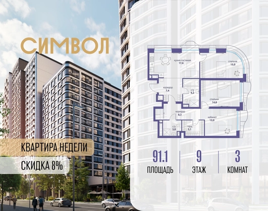 Продается 3-комнатная квартира от застройщика: общая площадь 91.10 м², жилая 42.80 м², кухня 17.60 м², 9-й этаж, жилой квартал «Вдохновение», корпус 34 (секция 1). Срок сдачи: 4 квартал 2027 года. Позвоните сейчас и забронируйте квартиру! Квартал бизнес-класса СИМВОЛ — это городское пространство нового поколения в историческом районе Лефортово, на границе ЦАО, в 2 км от Садового кольца. Бионическая архитектура СИМВОЛА превратила Лефортово в суперсовременное и модное пространство. Из окон, с балконов и террас просторных квартир СИМВОЛА открываются отличные виды на город и новый парк «Зеленая река», «протекающий» через все кварталы комплекса на 2 км. В квартале уже есть все, что нужно для комфортной жизни: кафе и рестораны, супермаркеты и магазины, медицинские и физкультурно-оздоровительные центры, салоны красоты и барбершопы, аптеки и оптики, химчистки, пункты доставки и другие сервисы — всего более 90 действующих объектов внутриквартальной инфраструктуры. Для юных жителей СИМВОЛА открыты детский сад и инженерный лицей при МГТУ им. Баумана. Особенности квартала: • Свой парк «Зеленая Река» - 10 га зелени и развлечений на любой вкус! • Уникальная для Москвы архитектура - Проект создан архитектурной мастерской ATRIUM по дизайн-коду британских бюро LDA Design и UHA London. • Богатая инфраструктура с детскими садами и лицеем им. Баумана, кафе и ресторанами, супермаркетами и аптеками, зоной для фитнеса, бассейном и мед. центром. • Квартиры с панорамными окнами, террасами, ванными с окнами и каминами редких форматов. • Закрытые безопасные зелёные дворы-парки без машин!О застройщике