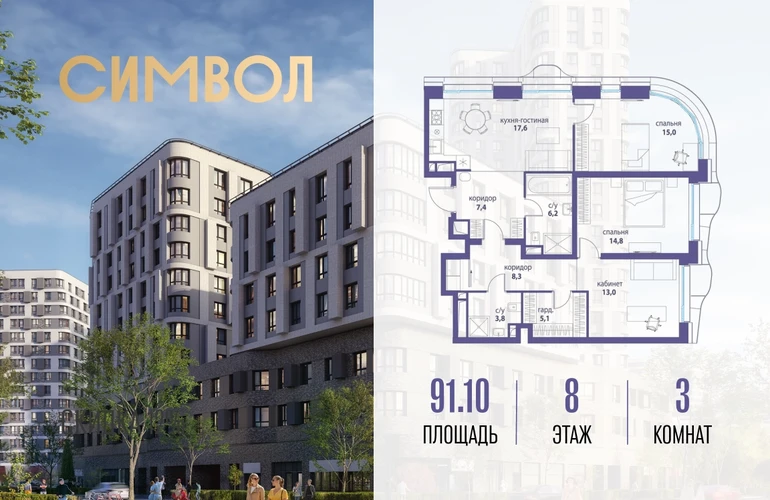 Продается 3-комнатная квартира от застройщика: общая площадь 91.10 м², жилая 42.80 м², кухня 17.60 м², 8-й этаж, жилой квартал «Вдохновение», корпус 34 (секция 1). Срок сдачи: 4 квартал 2027 года. Позвоните сейчас и забронируйте квартиру! Квартал бизнес-класса СИМВОЛ — это городское пространство нового поколения в историческом районе Лефортово, на границе ЦАО, в 2 км от Садового кольца. Бионическая архитектура СИМВОЛА превратила Лефортово в суперсовременное и модное пространство. Из окон, с балконов и террас просторных квартир СИМВОЛА открываются отличные виды на город и новый парк «Зеленая река», «протекающий» через все кварталы комплекса на 2 км. В квартале уже есть все, что нужно для комфортной жизни: кафе и рестораны, супермаркеты и магазины, медицинские и физкультурно-оздоровительные центры, салоны красоты и барбершопы, аптеки и оптики, химчистки, пункты доставки и другие сервисы — всего более 90 действующих объектов внутриквартальной инфраструктуры. Для юных жителей СИМВОЛА открыты детский сад и инженерный лицей при МГТУ им. Баумана. Особенности квартала: • Свой парк «Зеленая Река» - 10 га зелени и развлечений на любой вкус! • Уникальная для Москвы архитектура - Проект создан архитектурной мастерской ATRIUM по дизайн-коду британских бюро LDA Design и UHA London. • Богатая инфраструктура с детскими садами и лицеем им. Баумана, кафе и ресторанами, супермаркетами и аптеками, зоной для фитнеса, бассейном и мед. центром. • Квартиры с панорамными окнами, террасами, ванными с окнами и каминами редких форматов. • Закрытые безопасные зелёные дворы-парки без машин!О застройщике