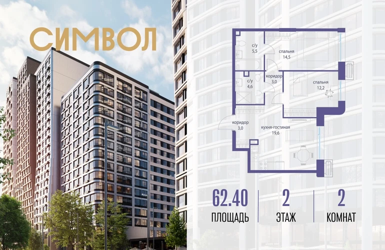 Продается 2-комнатная квартира от застройщика: общая площадь 62.40 м², жилая 26.70 м², кухня 19.60 м², 2-й этаж, жилой квартал «Гордость», корпус 36 (секция 5). Срок сдачи: 2 квартал 2029 года. Позвоните сейчас и забронируйте квартиру! Квартал бизнес-класса СИМВОЛ — это городское пространство нового поколения в историческом районе Лефортово, на границе ЦАО, в 2 км от Садового кольца. Бионическая архитектура СИМВОЛА превратила Лефортово в суперсовременное и модное пространство. Из окон, с балконов и террас просторных квартир СИМВОЛА открываются отличные виды на город и новый парк «Зеленая река», «протекающий» через все кварталы комплекса на 2 км. В квартале уже есть все, что нужно для комфортной жизни: кафе и рестораны, супермаркеты и магазины, медицинские и физкультурно-оздоровительные центры, салоны красоты и барбершопы, аптеки и оптики, химчистки, пункты доставки и другие сервисы — всего более 90 действующих объектов внутриквартальной инфраструктуры. Для юных жителей СИМВОЛА открыты детский сад и инженерный лицей при МГТУ им. Баумана. Особенности квартала: • Свой парк «Зеленая Река» - 10 га зелени и развлечений на любой вкус! • Уникальная для Москвы архитектура - Проект создан архитектурной мастерской ATRIUM по дизайн-коду британских бюро LDA Design и UHA London. • Богатая инфраструктура с детскими садами и лицеем им. Баумана, кафе и ресторанами, супермаркетами и аптеками, зоной для фитнеса, бассейном и мед. центром. • Квартиры с панорамными окнами, террасами, ванными с окнами и каминами редких форматов. • Закрытые безопасные зелёные дворы-парки без машин!О застройщике