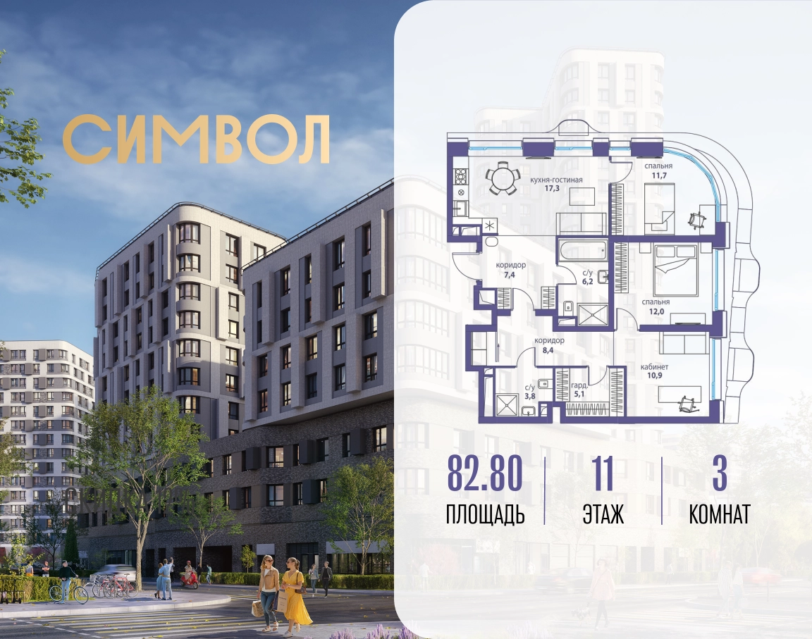 Продается 3-комнатная квартира от застройщика: общая площадь 82.80 м², жилая 40.60 м², кухня 17.30 м², 11-й этаж, жилой квартал «Вдохновение», корпус 34 (секция 1). Срок сдачи: 4 квартал 2027 года. Позвоните сейчас и забронируйте квартиру! Квартал бизнес-класса СИМВОЛ — это городское пространство нового поколения в историческом районе Лефортово, на границе ЦАО, в 2 км от Садового кольца. Бионическая архитектура СИМВОЛА превратила Лефортово в суперсовременное и модное пространство. Из окон, с балконов и террас просторных квартир СИМВОЛА открываются отличные виды на город и новый парк «Зеленая река», «протекающий» через все кварталы комплекса на 2 км. В квартале уже есть все, что нужно для комфортной жизни: кафе и рестораны, супермаркеты и магазины, медицинские и физкультурно-оздоровительные центры, салоны красоты и барбершопы, аптеки и оптики, химчистки, пункты доставки и другие сервисы — всего более 90 действующих объектов внутриквартальной инфраструктуры. Для юных жителей СИМВОЛА открыты детский сад и инженерный лицей при МГТУ им. Баумана. Особенности квартала: • Свой парк «Зеленая Река» - 10 га зелени и развлечений на любой вкус! • Уникальная для Москвы архитектура - Проект создан архитектурной мастерской ATRIUM по дизайн-коду британских бюро LDA Design и UHA London. • Богатая инфраструктура с детскими садами и лицеем им. Баумана, кафе и ресторанами, супермаркетами и аптеками, зоной для фитнеса, бассейном и мед. центром. • Квартиры с панорамными окнами, террасами, ванными с окнами и каминами редких форматов. • Закрытые безопасные зелёные дворы-парки без машин!О застройщике