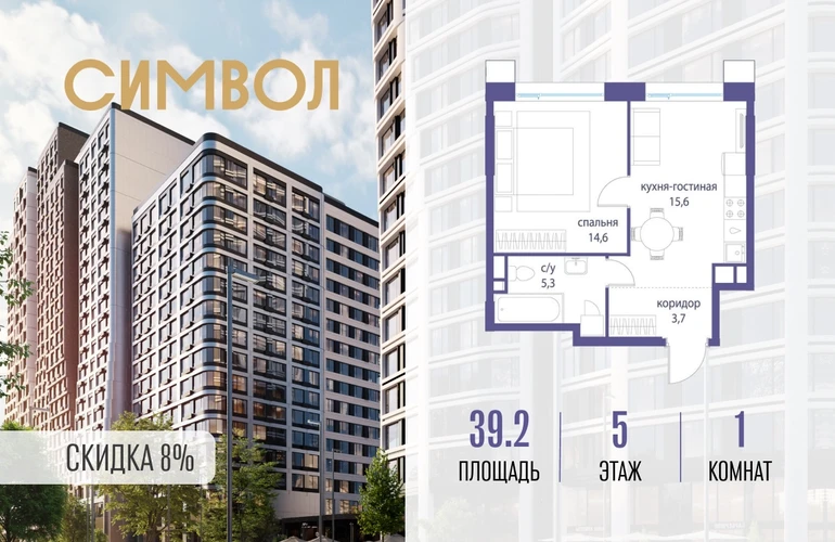 Продается 1-комнатная квартира от застройщика: общая площадь 39.20 м², жилая 14.60 м², кухня 15.60 м², 5-й этаж, жилой квартал «Гордость», корпус 36 (секция 5). Срок сдачи: 2 квартал 2029 года. Позвоните сейчас и забронируйте квартиру! Квартал бизнес-класса СИМВОЛ — это городское пространство нового поколения в историческом районе Лефортово, на границе ЦАО, в 2 км от Садового кольца. Бионическая архитектура СИМВОЛА превратила Лефортово в суперсовременное и модное пространство. Из окон, с балконов и террас просторных квартир СИМВОЛА открываются отличные виды на город и новый парк «Зеленая река», «протекающий» через все кварталы комплекса на 2 км. В квартале уже есть все, что нужно для комфортной жизни: кафе и рестораны, супермаркеты и магазины, медицинские и физкультурно-оздоровительные центры, салоны красоты и барбершопы, аптеки и оптики, химчистки, пункты доставки и другие сервисы — всего более 90 действующих объектов внутриквартальной инфраструктуры. Для юных жителей СИМВОЛА открыты детский сад и инженерный лицей при МГТУ им. Баумана. Особенности квартала: • Свой парк «Зеленая Река» - 10 га зелени и развлечений на любой вкус! • Уникальная для Москвы архитектура - Проект создан архитектурной мастерской ATRIUM по дизайн-коду британских бюро LDA Design и UHA London. • Богатая инфраструктура с детскими садами и лицеем им. Баумана, кафе и ресторанами, супермаркетами и аптеками, зоной для фитнеса, бассейном и мед. центром. • Квартиры с панорамными окнами, террасами, ванными с окнами и каминами редких форматов. • Закрытые безопасные зелёные дворы-парки без машин!О застройщике