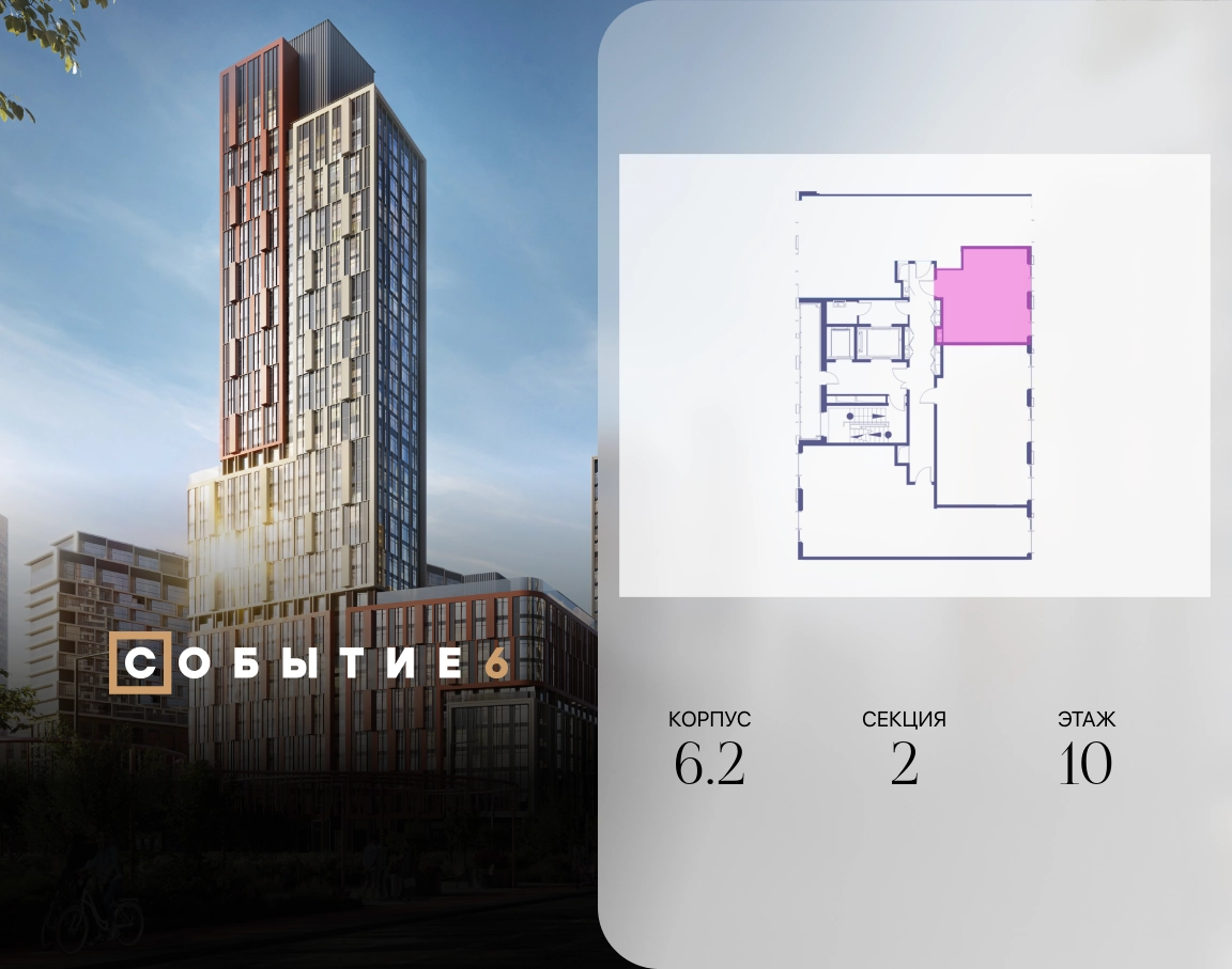 Продаётся квартира-студия от застройщика: общая площадь 33.90 м², жилая 20.00 м², кухня 5.00 м², 10-й этаж, жилой квартал «Событие-6», корпус 2 (секция 2) Срок сдачи: 1 квартал 2029 года. Позвоните сейчас и забронируйте квартиру! Продуманный до деталей. Созданный для жизни, полной счастливых событий. Парк-квартал СОБЫТИЕ — это жизнь класса премиум в престижном районе на Мосфильмовской улице. Архитектура мирового уровня. Выигрышное расположение на границе природного комплекса «Долина реки Раменки». Все для комфортной жизни и досуга: от детсадов и школ до ресторанов и медцентров. И новая точка притяжения — уже готовый парк «Событие» с пространствами активности для всех возрастов и интересов. Особенности квартала: • «Парящие» мосты и парк под облаками - уникальный дом с самыми завораживающими видами из окон «в пол» • Собственный парк — сразу за порогом! • Архитектурная концепция от известных международных бюро LDA Design и UHA London • Инфраструктура «тапочной доступности»: в кафе, школу, магазин — за пару минут! • Внутренний двор — настоящее продолжение вашего дома: закрытая охраняемая территория без машин, развивающие детские площадки, воркауты-зоны для тех, кто хочет быть в форме, площади для праздников и посиделок с соседями.О застройщике
