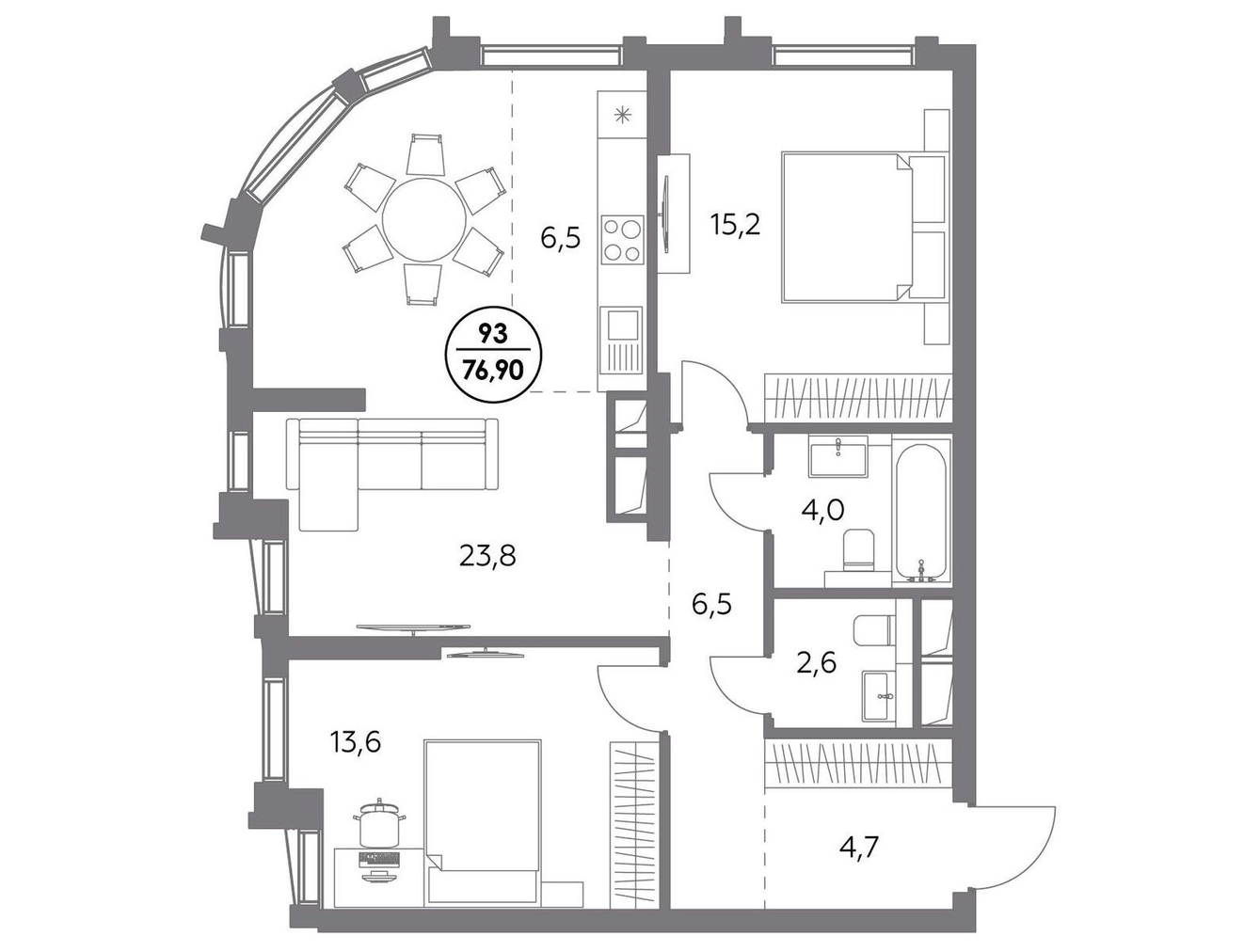 В премиум-квартале «Дом 56» на Бауманской напрямую от девелопера ГК «Галс-Девелопмент» представлена 2-комнатная квартира на 20 этаже общей площадью 76.90 м². Квартира предлагается без отделки, со свободной планировкой. Пространство позволяет воплотить дизайн - проект в соответствии с Вашими предпочтениями. «Дом 56» — расположен в Басманном районе на ул. Фридриха Энгельса, всего в 12-15 минутах пешком от станций метро «Бауманская» и «Электрозаводская». Рядом с премиум-кварталом находятся важные городские магистрали — ТТК, набережная реки Яузы и Бакунинская улица, переходящая в Спартаковскую и Маросейку. Архитектурный стиль «Дома 56» — параметрический минимализм. Футуристические фасады квартала с «эффектом закручивания» словно вращаются вокруг своей оси. Динамичный образ башен дополняет эффектное остекление — окна в пол будут в каждой квартире. «Дом 56» станет органичным продолжением современной научно-креативной среды Басманного района: — Развитое окружение — десятки различных точек притяжения; — Близость престижных вузов: МГТУ, МЭИ и Британская высшая школа дизайна; — Соседство с Технологической долиной и всем необходимым для запуска стартапа; — Набережные и парки для спорта и отдыха. «Дом 56» оснащён первоклассными инженерными системами. Входы на территорию, в здание и паркинг оборудованы системой контроля и управления доступом. С любого этажа в лобби и паркинг спускаются быстрые и бесшумные лифты премиального бренда. Во внутреннем приватном дворе будет создано пространство в бионическом стиле с лаунж-зонами, подвесными качелями, детскими плейхабами для разных возрастов, площадками для спорта и отдыха в окружении зелени. На двух подземных уровнях предусмотрен подземный паркинг и кладовые помещения.О застройщике
