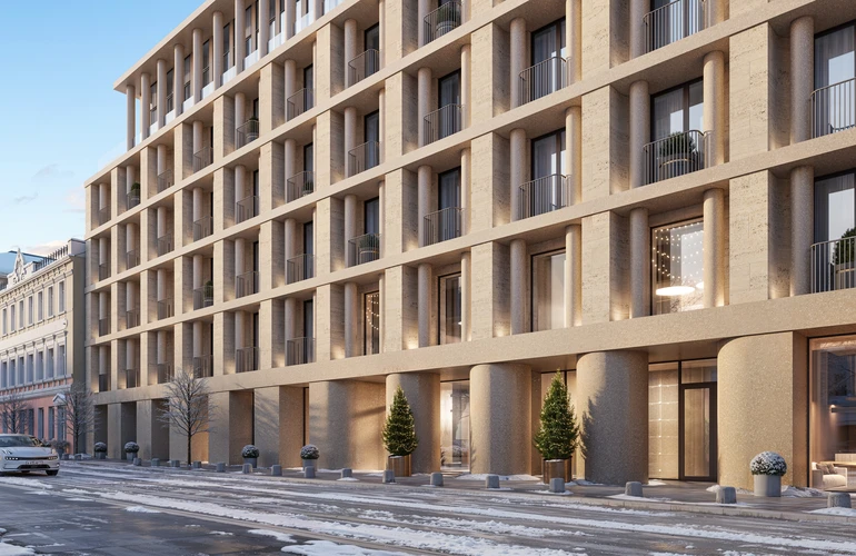 Современный дом бизнес-класса расположен в историческом центре Москвы по адресу улица Рождественка, 8с1. Здание выполнено в стиле, сочетающем современные архитектурные решения и классическую эстетику московских доходных домов. Фасады отделаны натуральным камнем, а большие окна обеспечивают отличную инсоляцию и вид на старую Москву. В комплексе предусмотрено ограниченное количество квартир, что создаёт атмосферу приватности и уюта. Продуманные планировки позволяют рационально использовать пространство, а инженерные системы соответствуют высоким стандартам комфорта. Внутренняя территория благоустроена: здесь размещены озеленённые зоны и места для отдыха жителей.
