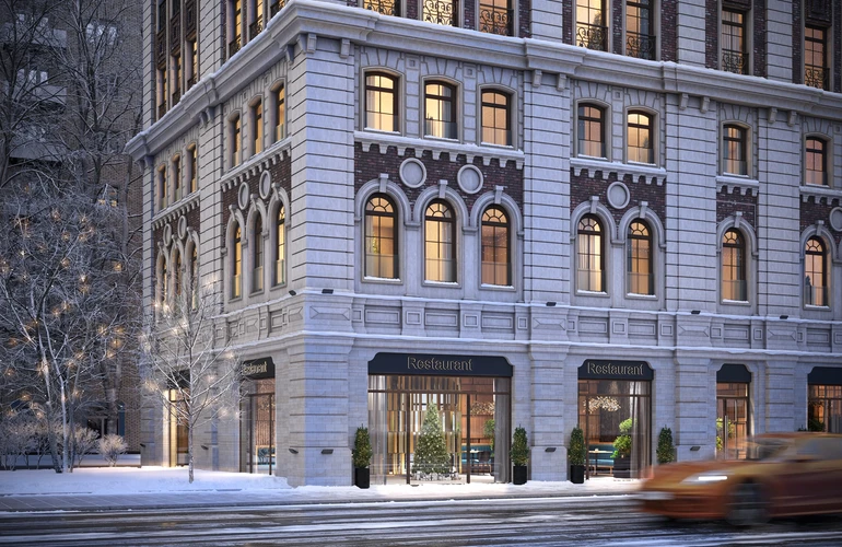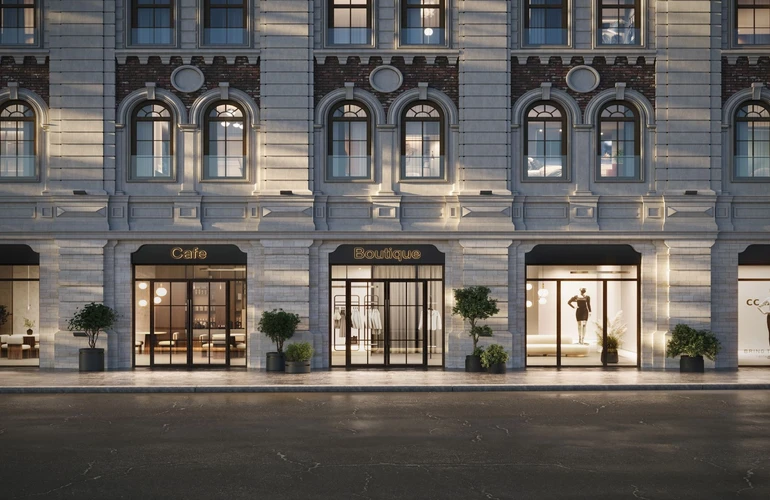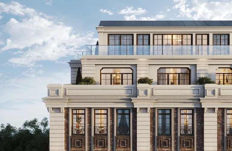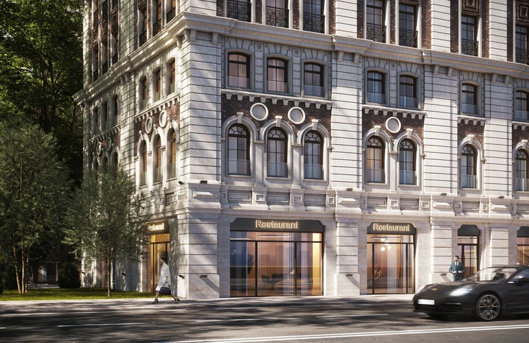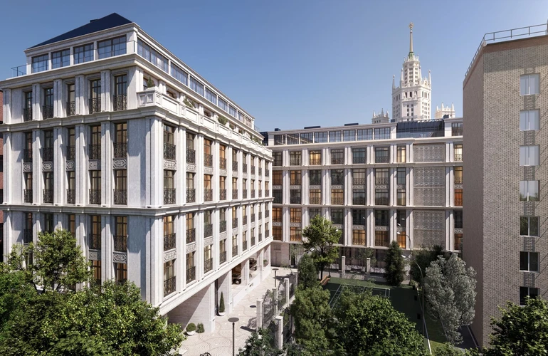 Пространство двора будет закрыто ажурной кованой оградой, вечерняя подсветка дома в обрамлении зелени дополнит атмосферу уюта и камерности. Отличительная особенность проекта — приватное патио с тенелюбивыми растениями и арт-объектами. В лобби есть лаунж-зона с камином и мягкими креслами, а также отдельная зона для собственных мероприятий резидентов — деловых или личных. Здесь удобно провести переговоры, организовать фуршет или коктейльный вечер.
