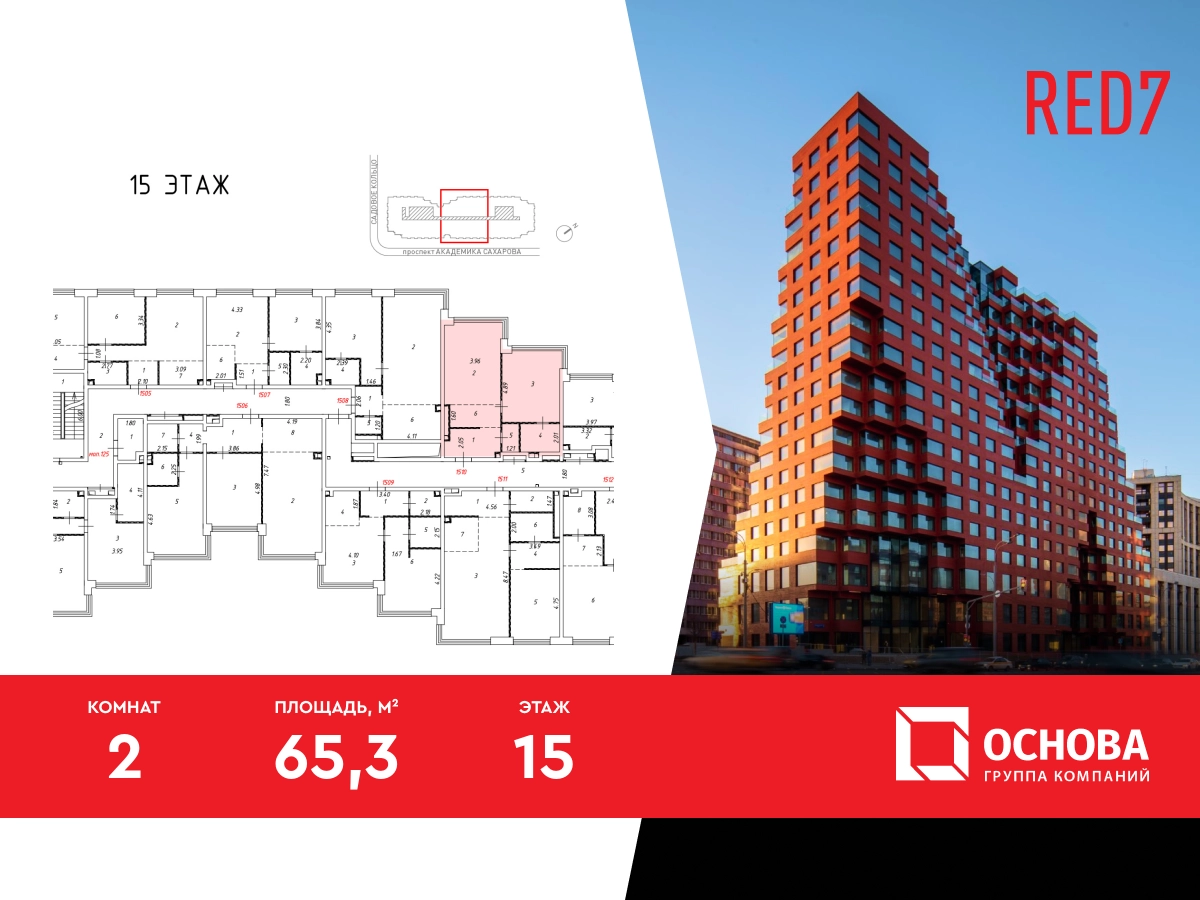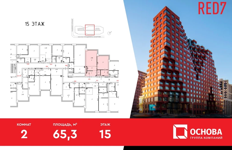 «RED7» — комплекс премиум-класса в самом сердце исторической Москвы, где каждая деталь продумана до мелочей. Продаются светлые 2-комнатные апартаменты площадью 65.30 кв. м, на 15 этаже престижного комплекса RED7, расположенного в самом центре Москвы, на первой линии Садового кольца. До Кремля всего 2,4 км. В шаговой доступности метро «Красные Ворота», Чистые пруды, уютные парки, театры, рестораны и все городские удобства. Расположение RED7 расположен в историческом центре Москвы, всего в 2,4 км от Кремля. Это новая достопримечательность, дополняющая облик города и ансамбль иконических зданий Садового кольца. Рядом с RED7 находятся бизнес-центры и офисы крупных компаний, штаб-квартиры банков, посольства и, безусловно, лучшие рестораны, магазины и места культурного досуга. Архитектура проекта Архитектурная концепция RED7 разработана всемирно известным голландским бюро MVRDV, с 1991 года создавшее множество выдающихся образцов прогрессивной архитектуры в Нидерландах, Франции, Дании, Испании, США, Японии, Китае и — впервые — в России, шаг за шагом пришло к форме RED7 как ответу русскому авангарду и сталинской архитектуре из далекого будущего. Этот дом не просто выдающееся архитектурное событие, он задает тон и формирует архитектурную ДНК Москвы будущего. Инфраструктура проекта RED7 — не просто апартаменты, это шаг в будущее жилых и общественных пространств. В комплексе будет создана «небесная гостиная» — клубное пространство для жителей со спортивной зоной, кинотеатром, коворкингом и местами для отдыха. Инфраструктура RED7 с открытым доступом включает премиальный фитнес-центр площадью 3,5 тысячи кв. м с полноразмерным бассейном длинной в 25м от, два ресторана от известных рестораторов, кафе, супермаркет премиального уровня, магазины и сопутствующие сервисы. Жители RED7 получают доступ ко всему набору сервисов дома, а общественные зоны дома создают идеальную атмосферу для общения, работы, развития и наслаждения жизнью. Технологии и материалы В апартаментах установлены полноразмерные панорамные окна в пол с шумоизоляцией от бельгийской компании Reynaers высотой до 4,5 метров. Особое внимание в RED7 уделяется микроклимату внутри дома: система вентиляции, очистки и кондиционирования воздуха в каждом апартаменте управляются удаленно через приложение iRED. В RED7 установлена система видеонаблюдения по всему комплексу, технология распознавания лиц и удаленный контроль охранных систем апартаментов. Паркинг Просторный 4-х уровневый паркинг расположен на подземных этажах. Количество машиномест — 284. Также предусмотрены кладовые, которые позволят освободить апартаменты от сезонных или редко используемых вещей Звоните и получите подробную консультацию, специалисты отдела продаж помогут выбрать наиболее подходящий вариант! Дистанционное оформление ипотеки, рассрочка и другие варианты покупки для вашего удобства.О застройщике