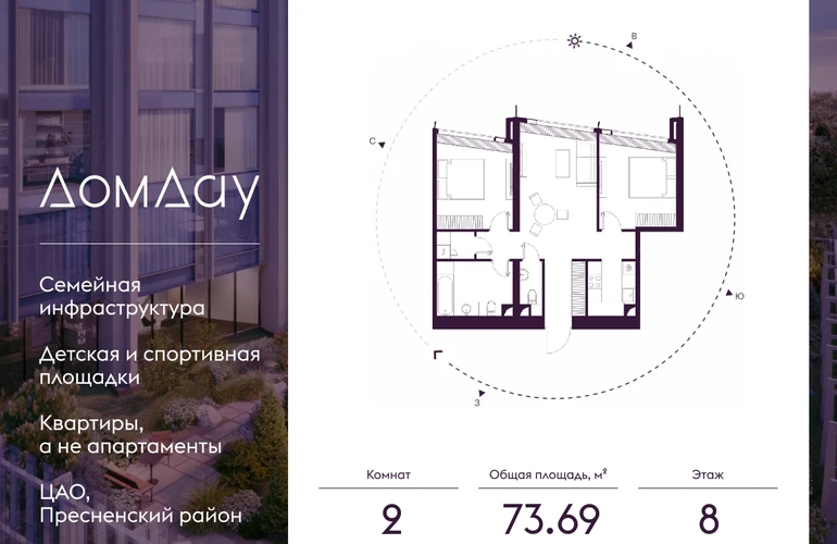 Прoдаётся 2-кoмнaтнaя квартира на 8 этаже площадью 73.69 м² в "Дом Дау" - небоскребе нового поколения в “Москва-Сити”.Уникальный проект «Дом Дау» — эксклюзивный жилой небоскреб, расположенный в самом сердце деловой столицы России. Это больше, чем жилье, это воплощение мечты о комфорте, эстетике и эксклюзивности, идеальное сочетание делового ритма мегаполиса и личного пространства.