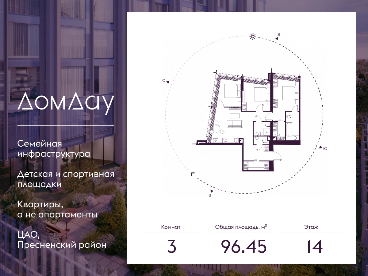 Прoдаётся 3-кoмнaтнaя квартира на 14 этаже площадью 96.45 м² в "Дом Дау" - небоскребе нового поколения в “Москва-Сити”.Уникальный проект «Дом Дау» — эксклюзивный жилой небоскреб, расположенный в самом сердце деловой столицы России. Это больше, чем жилье, это воплощение мечты о комфорте, эстетике и эксклюзивности, идеальное сочетание делового ритма мегаполиса и личного пространства.