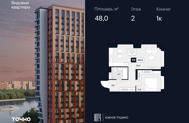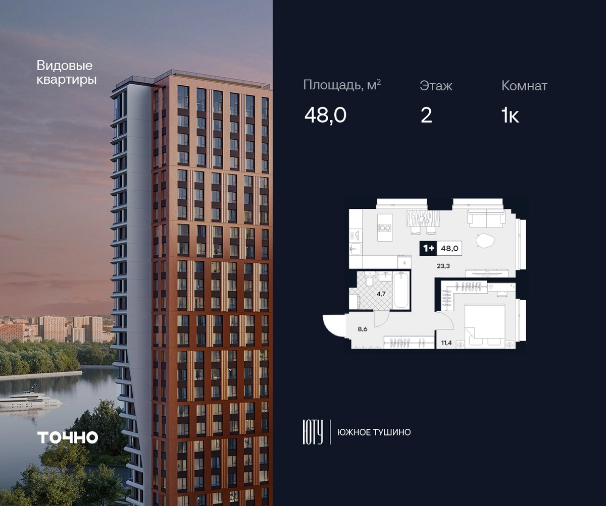 ЮТУ-камерные небоскребы бизнес-класса с исключительной архитектурой, видовыми квартирами и подходом к большой воде-благоустроенной набережной канала имени Москвы. Проект ЮТУ создает идеальный баланс жизни в городе. Это приватный оазис, где в любой момент можно сменить контекст и выбрать любой из тысячи маршрутов к активному отдыху и ярким впечатлениям. Локация премиум-класса • Первая линии в прибрежной части Химкинского водохранилища • Исключительно тихий и зелёный район Южное Тушино • За 2 минуты можно спуститься к воде, за 10 минут найти зеленые парки и готовую инфраструктуру, за 30 минут доехать до Кремля Концепция проекта • Две футуристичные башни, соединенные торговой галереей от бюро ATRIUM • 60 неповторяющихся планировок: квартиры с угловым «плавным» панорамным остеклением, мастер-спальнями и гостиными до 39м² и просто очень большие квартиры площадью до 128,6 м² • Беспрецедентная коллекция видов-в проекте 80 % видовых квартир Чувство эксклюзивности • Своя приватная жилая экосистема -только для резидентов домов • Лаунж-терраса на крыше • Пространство скрыто от посторонних глаз-с трех сторон его окружают строения проекта Прогрессивные технологии • 3-уровневая система безопасности (Face ID, BLE-метки, видеонаблюдение) • Умный паркинг с распознаванием номеров Проект федерального девелопера ТОЧНО-из ТОП-3 застройщиков России. Компания в проекте реализует ответственный подход к развитию пространств для благополучной жизни человека. И что в ЮТУ особенное воплощение приобретает концепция человекоцентричности, как заметная грань девелопмента ТОЧНО.