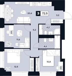 3-ком, 72.5 кв.м., 14/21эт.
