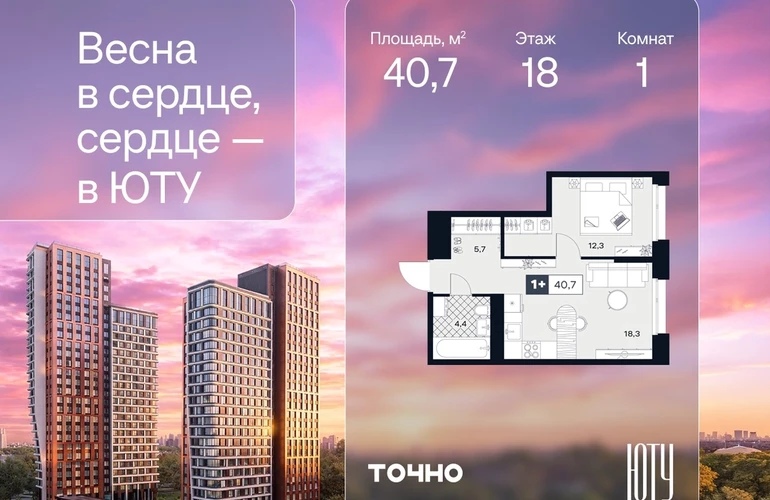 ЮТУ-камерные небоскребы бизнес-класса с исключительной архитектурой, видовыми квартирами и подходом к большой воде-благоустроенной набережной канала имени Москвы. Проект ЮТУ создает идеальный баланс жизни в городе. Это приватный оазис, где в любой момент можно сменить контекст и выбрать любой из тысячи маршрутов к активному отдыху и ярким впечатлениям. Локация премиум-класса • Первая линии в прибрежной части Химкинского водохранилища • Исключительно тихий и зелёный район Южное Тушино • За 2 минуты можно спуститься к воде, за 10 минут найти зеленые парки и готовую инфраструктуру, за 30 минут доехать до Кремля Концепция проекта • Две футуристичные башни, соединенные торговой галереей от бюро ATRIUM • 60 неповторяющихся планировок: квартиры с угловым «плавным» панорамным остеклением, мастер-спальнями и гостиными до 39м² и просто очень большие квартиры площадью до 128,6 м² • Беспрецедентная коллекция видов-в проекте 80 % видовых квартир Чувство эксклюзивности • Своя приватная жилая экосистема -только для резидентов домов • Лаунж-терраса на крыше • Пространство скрыто от посторонних глаз-с трех сторон его окружают строения проекта Прогрессивные технологии • 3-уровневая система безопасности (Face ID, BLE-метки, видеонаблюдение) • Умный паркинг с распознаванием номеров Проект федерального девелопера ТОЧНО-из ТОП-3 застройщиков России. Компания в проекте реализует ответственный подход к развитию пространств для благополучной жизни человека. И что в ЮТУ особенное воплощение приобретает концепция человекоцентричности, как заметная грань девелопмента ТОЧНО.