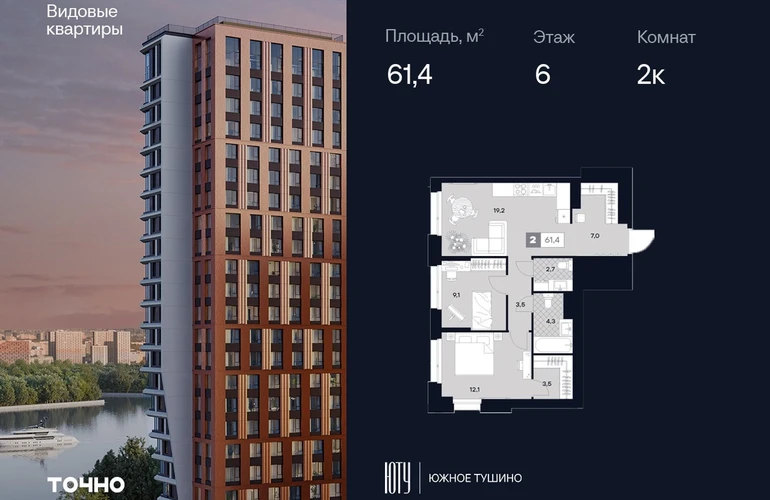 ЮТУ-камерные небоскребы бизнес-класса с исключительной архитектурой, видовыми квартирами и подходом к большой воде-благоустроенной набережной канала имени Москвы. Проект ЮТУ создает идеальный баланс жизни в городе. Это приватный оазис, где в любой момент можно сменить контекст и выбрать любой из тысячи маршрутов к активному отдыху и ярким впечатлениям. Локация премиум-класса • Первая линии в прибрежной части Химкинского водохранилища • Исключительно тихий и зелёный район Южное Тушино • За 2 минуты можно спуститься к воде, за 10 минут найти зеленые парки и готовую инфраструктуру, за 30 минут доехать до Кремля Концепция проекта • Две футуристичные башни, соединенные торговой галереей от бюро ATRIUM • 60 неповторяющихся планировок: квартиры с угловым «плавным» панорамным остеклением, мастер-спальнями и гостиными до 39м² и просто очень большие квартиры площадью до 128,6 м² • Беспрецедентная коллекция видов-в проекте 80 % видовых квартир Чувство эксклюзивности • Своя приватная жилая экосистема -только для резидентов домов • Лаунж-терраса на крыше • Пространство скрыто от посторонних глаз-с трех сторон его окружают строения проекта Прогрессивные технологии • 3-уровневая система безопасности (Face ID, BLE-метки, видеонаблюдение) • Умный паркинг с распознаванием номеров Проект федерального девелопера ТОЧНО-из ТОП-3 застройщиков России. Компания в проекте реализует ответственный подход к развитию пространств для благополучной жизни человека. И что в ЮТУ особенное воплощение приобретает концепция человекоцентричности, как заметная грань девелопмента ТОЧНО.