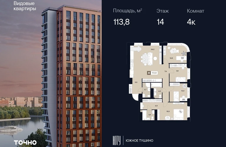 ЮТУ-камерные небоскребы бизнес-класса с исключительной архитектурой, видовыми квартирами и подходом к большой воде-благоустроенной набережной канала имени Москвы. Проект ЮТУ создает идеальный баланс жизни в городе. Это приватный оазис, где в любой момент можно сменить контекст и выбрать любой из тысячи маршрутов к активному отдыху и ярким впечатлениям. Локация премиум-класса • Первая линии в прибрежной части Химкинского водохранилища • Исключительно тихий и зелёный район Южное Тушино • За 2 минуты можно спуститься к воде, за 10 минут найти зеленые парки и готовую инфраструктуру, за 30 минут доехать до Кремля Концепция проекта • Две футуристичные башни, соединенные торговой галереей от бюро ATRIUM • 60 неповторяющихся планировок: квартиры с угловым «плавным» панорамным остеклением, мастер-спальнями и гостиными до 39м² и просто очень большие квартиры площадью до 128,6 м² • Беспрецедентная коллекция видов-в проекте 80 % видовых квартир Чувство эксклюзивности • Своя приватная жилая экосистема -только для резидентов домов • Лаунж-терраса на крыше • Пространство скрыто от посторонних глаз-с трех сторон его окружают строения проекта Прогрессивные технологии • 3-уровневая система безопасности (Face ID, BLE-метки, видеонаблюдение) • Умный паркинг с распознаванием номеров Проект федерального девелопера ТОЧНО-из ТОП-3 застройщиков России. Компания в проекте реализует ответственный подход к развитию пространств для благополучной жизни человека. И что в ЮТУ особенное воплощение приобретает концепция человекоцентричности, как заметная грань девелопмента ТОЧНО.