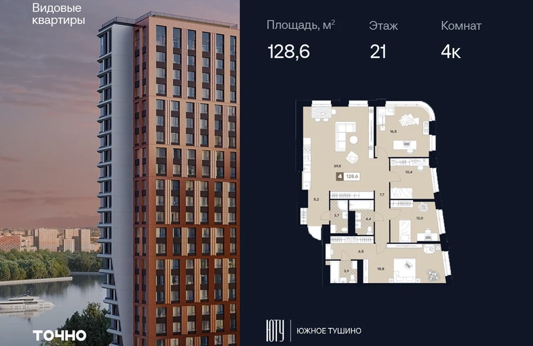 ЮТУ-камерные небоскребы бизнес-класса с исключительной архитектурой, видовыми квартирами и подходом к большой воде-благоустроенной набережной канала имени Москвы. Проект ЮТУ создает идеальный баланс жизни в городе. Это приватный оазис, где в любой момент можно сменить контекст и выбрать любой из тысячи маршрутов к активному отдыху и ярким впечатлениям. Локация премиум-класса • Первая линии в прибрежной части Химкинского водохранилища • Исключительно тихий и зелёный район Южное Тушино • За 2 минуты можно спуститься к воде, за 10 минут найти зеленые парки и готовую инфраструктуру, за 30 минут доехать до Кремля Концепция проекта • Две футуристичные башни, соединенные торговой галереей от бюро ATRIUM • 60 неповторяющихся планировок: квартиры с угловым «плавным» панорамным остеклением, мастер-спальнями и гостиными до 39м² и просто очень большие квартиры площадью до 128,6 м² • Беспрецедентная коллекция видов-в проекте 80 % видовых квартир Чувство эксклюзивности • Своя приватная жилая экосистема -только для резидентов домов • Лаунж-терраса на крыше • Пространство скрыто от посторонних глаз-с трех сторон его окружают строения проекта Прогрессивные технологии • 3-уровневая система безопасности (Face ID, BLE-метки, видеонаблюдение) • Умный паркинг с распознаванием номеров Проект федерального девелопера ТОЧНО-из ТОП-3 застройщиков России. Компания в проекте реализует ответственный подход к развитию пространств для благополучной жизни человека. И что в ЮТУ особенное воплощение приобретает концепция человекоцентричности, как заметная грань девелопмента ТОЧНО.
