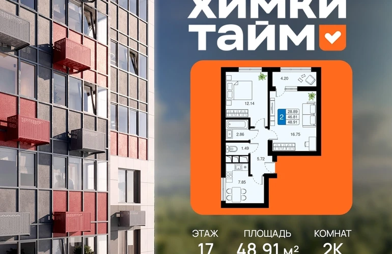 Продается двухкомнатная квартирав жилом комплексе комфорт класса «Химки Тайм» площадью 48.91 кв.м на 17 этаже 20 этажного дома. Квартира с полной отделкой, окна выходят во двор и на улицу.Прекрасный выбор для первой квартиры или инвестиций.