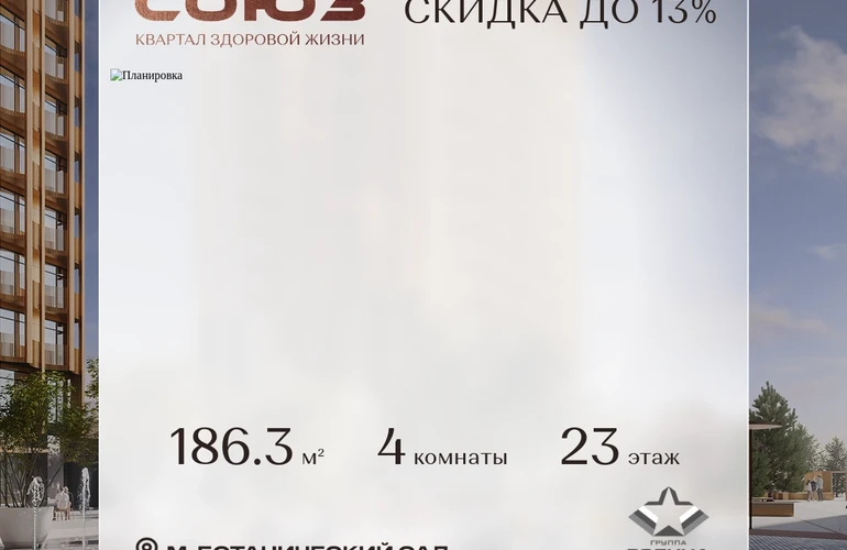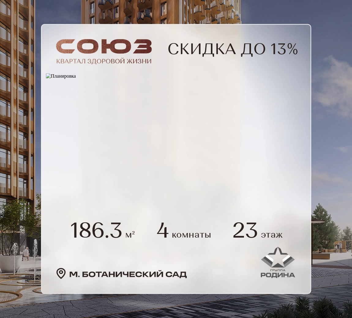 Продаётся 4-комнатная квартира площадью 184.8 м² на 23 этаже в Жилом Комплексе «Союз».