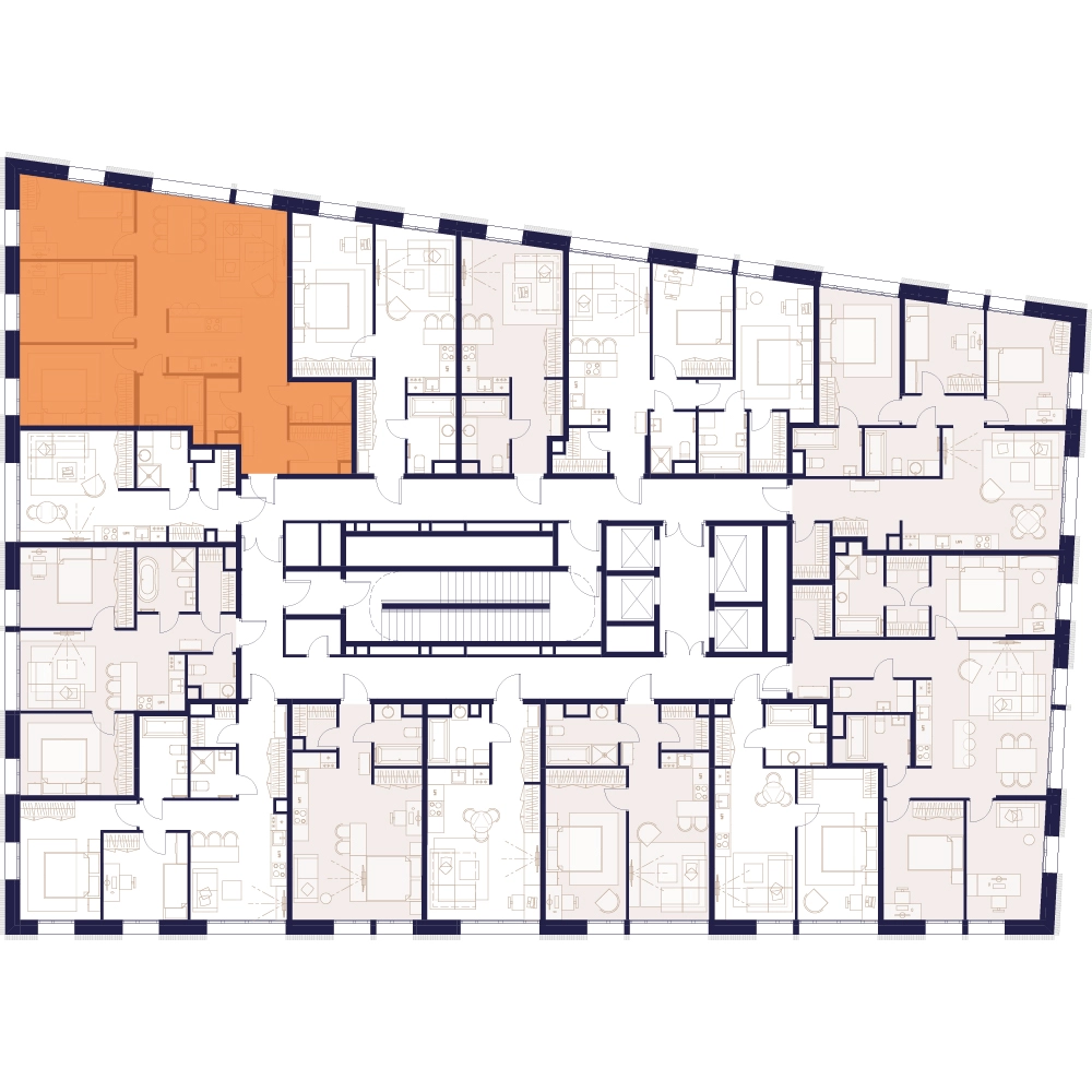 Уникальные форматы квартир с мастер-спальнями, приватными террасами, балконами, а также пентхаусы с открыточными видами на город.