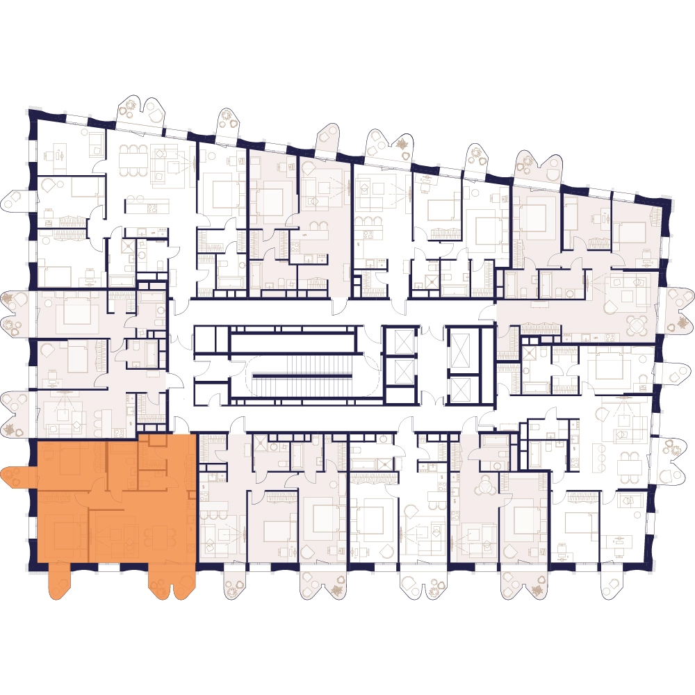 Уникальные форматы квартир с мастер-спальнями, приватными террасами, балконами, а также пентхаусы с открыточными видами на город.