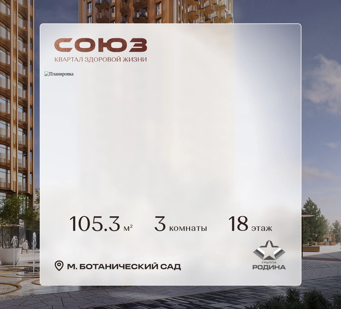 Рассрочка 0%Продаётся 3-комнатная квартира площадью 105.3 м² на 18 этаже в Жилом Комплексе «Союз».