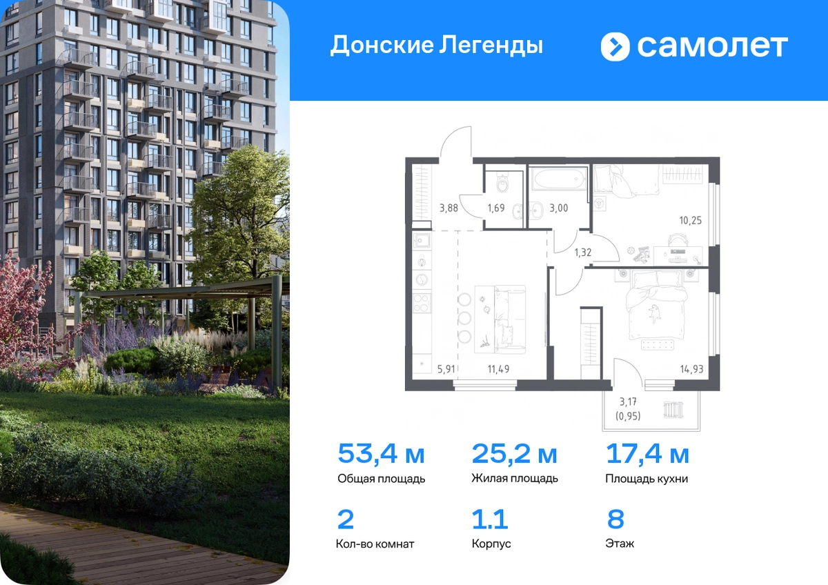 Строим кварталы для жизни с заботой о будущем. Предлагается 2-комнатная квартира комфорт-класса 53,42 кв.м в корпусе 1.1 на 8 этаже, в ЖК «Донские Легенды» Квартира без отделки. Доступность опции «отделка» и возможность комплектации мебелью и декором уточняйте у застройщика. Приобрести квартиру возможно по специальным акциям от застройщика, с текущими условиями акций можно ознакомиться в блоке «Акций». Цена динамическая и может отличаться, уточняйте актуальность у застройщика. Чувствовать гордость, когда любимая команда забивает гол, и с удовольствием спешить на тренировку по мини-футболу или теннису — так выглядит атмосфера в «Квартале Чехова» в Ленинском районе. Здесь каждый день станет ценным экспонатом в вашей коллекции впечатлений. Проект расположен рядом с Восточным шоссе и улицей Пойменной, всего в 10 минутах на машине от центра города. За 3 минуты вы доберетесь до Ворошиловского моста, а за 4 — до Темерницкого. Если не хотите ехать на машине, рядом остановки автобусов. Поблизости находится спортивный комплекс «Гребной канал Дон», а стадион «Ростов Арена» ждет любителей футбола. Прогуляться по благоустроенной набережной, повеселиться в аквапарке и подкрепиться мороженым можно в Левобережном парке — до него 5 минут на такси. Утро начнется с прогулки с малышом до одного из 3 детских садов. Рядом есть школа для ребят постарше, детская школа искусств, центр культурного развития и ФОК. В квартале откроются поликлиника со станцией скорой помощи и 2 торговых центра. Архитектура квартала сочетает современность и изящество. Элегантные французские балконы и панорамные окна позволят наслаждаться великолепными пейзажами. Во дворе дети играют на площадках, а взрослые занимаются спортом. У жителей будет собственный ипподром для соревнований по конкуру. А еще подземный и многоуровневые паркинги на 7,5 тысячи машино-мест. Входы в подъезды расположены на уровне земли, что удобно для родителей с колясками и путешественников. Для будущих жителей — квартиры без отделки. Можно реализовать любые дизайнерские идеи в своем новом доме.#yan19-2r1777237#О застройщике