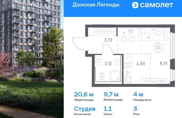 Строим кварталы для жизни с заботой о будущем. Предлагается квартира студия комфорт-класса 20,59 кв.м в корпусе 1.1 на 3 этаже, в ЖК «Донские Легенды» Квартира с предчистовой отделкой. Доступность дополнительных опций уточняйте у застройщика. Приобрести квартиру возможно по специальным акциям от застройщика, с текущими условиями акций можно ознакомиться в блоке «Акций». Цена динамическая и может отличаться, уточняйте актуальность у застройщика. Чувствовать гордость, когда любимая команда забивает гол, и с удовольствием спешить на тренировку по мини-футболу или теннису — так выглядит атмосфера в «Квартале Чехова» в Ленинском районе. Здесь каждый день станет ценным экспонатом в вашей коллекции впечатлений. Проект расположен рядом с Восточным шоссе и улицей Пойменной, всего в 10 минутах на машине от центра города. За 3 минуты вы доберетесь до Ворошиловского моста, а за 4 — до Темерницкого. Если не хотите ехать на машине, рядом остановки автобусов. Поблизости находится спортивный комплекс «Гребной канал Дон», а стадион «Ростов Арена» ждет любителей футбола. Прогуляться по благоустроенной набережной, повеселиться в аквапарке и подкрепиться мороженым можно в Левобережном парке — до него 5 минут на такси. Утро начнется с прогулки с малышом до одного из 3 детских садов. Рядом есть школа для ребят постарше, детская школа искусств, центр культурного развития и ФОК. В квартале откроются поликлиника со станцией скорой помощи и 2 торговых центра. Архитектура квартала сочетает современность и изящество. Элегантные французские балконы и панорамные окна позволят наслаждаться великолепными пейзажами. Во дворе дети играют на площадках, а взрослые занимаются спортом. У жителей будет собственный ипподром для соревнований по конкуру. А еще подземный и многоуровневые паркинги на 7,5 тысячи машино-мест. Входы в подъезды расположены на уровне земли, что удобно для родителей с колясками и путешественников. Для будущих жителей — квартиры без отделки. Можно реализовать любые дизайнерские идеи в своем новом доме.#yan19-2r1791991#О застройщике