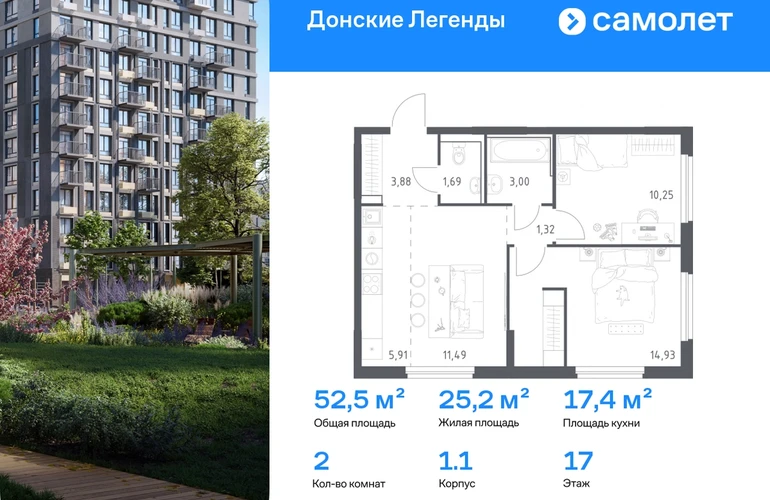 Строим кварталы для жизни с заботой о будущем. Предлагается 2-комнатная квартира комфорт-класса 52,47 кв.м в корпусе 1.1 на 17 этаже, в ЖК «Донские Легенды» Квартира без отделки. Доступность опции «отделка» и возможность комплектации мебелью и декором уточняйте у застройщика. Приобрести квартиру возможно по специальным акциям от застройщика, с текущими условиями акций можно ознакомиться в блоке «Акций». Цена динамическая и может отличаться, уточняйте актуальность у застройщика. Чувствовать гордость, когда любимая команда забивает гол, и с удовольствием спешить на тренировку по мини-футболу или теннису — так выглядит атмосфера в «Квартале Чехова» в Ленинском районе. Здесь каждый день станет ценным экспонатом в вашей коллекции впечатлений. Проект расположен рядом с Восточным шоссе и улицей Пойменной, всего в 10 минутах на машине от центра города. За 3 минуты вы доберетесь до Ворошиловского моста, а за 4 — до Темерницкого. Если не хотите ехать на машине, рядом остановки автобусов. Поблизости находится спортивный комплекс «Гребной канал Дон», а стадион «Ростов Арена» ждет любителей футбола. Прогуляться по благоустроенной набережной, повеселиться в аквапарке и подкрепиться мороженым можно в Левобережном парке — до него 5 минут на такси. Утро начнется с прогулки с малышом до одного из 3 детских садов. Рядом есть школа для ребят постарше, детская школа искусств, центр культурного развития и ФОК. В квартале откроются поликлиника со станцией скорой помощи и 2 торговых центра. Архитектура квартала сочетает современность и изящество. Элегантные французские балконы и панорамные окна позволят наслаждаться великолепными пейзажами. Во дворе дети играют на площадках, а взрослые занимаются спортом. У жителей будет собственный ипподром для соревнований по конкуру. А еще подземный и многоуровневые паркинги на 7,5 тысячи машино-мест. Входы в подъезды расположены на уровне земли, что удобно для родителей с колясками и путешественников. Для будущих жителей — квартиры без отделки. Можно реализовать любые дизайнерские идеи в своем новом доме.#yan19-2r1804551#О застройщике