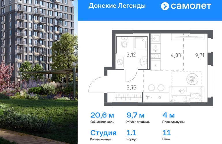 Строим кварталы для жизни с заботой о будущем. Предлагается квартира студия комфорт-класса 20,59 кв.м в корпусе 1.1 на 11 этаже, в ЖК «Донские Легенды» Квартира с предчистовой отделкой. Доступность дополнительных опций уточняйте у застройщика. Приобрести квартиру возможно по специальным акциям от застройщика, с текущими условиями акций можно ознакомиться в блоке «Акций». Цена динамическая и может отличаться, уточняйте актуальность у застройщика. Чувствовать гордость, когда любимая команда забивает гол, и с удовольствием спешить на тренировку по мини-футболу или теннису — так выглядит атмосфера в «Квартале Чехова» в Ленинском районе. Здесь каждый день станет ценным экспонатом в вашей коллекции впечатлений. Проект расположен рядом с Восточным шоссе и улицей Пойменной, всего в 10 минутах на машине от центра города. За 3 минуты вы доберетесь до Ворошиловского моста, а за 4 — до Темерницкого. Если не хотите ехать на машине, рядом остановки автобусов. Поблизости находится спортивный комплекс «Гребной канал Дон», а стадион «Ростов Арена» ждет любителей футбола. Прогуляться по благоустроенной набережной, повеселиться в аквапарке и подкрепиться мороженым можно в Левобережном парке — до него 5 минут на такси. Утро начнется с прогулки с малышом до одного из 3 детских садов. Рядом есть школа для ребят постарше, детская школа искусств, центр культурного развития и ФОК. В квартале откроются поликлиника со станцией скорой помощи и 2 торговых центра. Архитектура квартала сочетает современность и изящество. Элегантные французские балконы и панорамные окна позволят наслаждаться великолепными пейзажами. Во дворе дети играют на площадках, а взрослые занимаются спортом. У жителей будет собственный ипподром для соревнований по конкуру. А еще подземный и многоуровневые паркинги на 7,5 тысячи машино-мест. Входы в подъезды расположены на уровне земли, что удобно для родителей с колясками и путешественников. Для будущих жителей — квартиры без отделки. Можно реализовать любые дизайнерские идеи в своем новом доме.#yan19-2r1810395#О застройщике