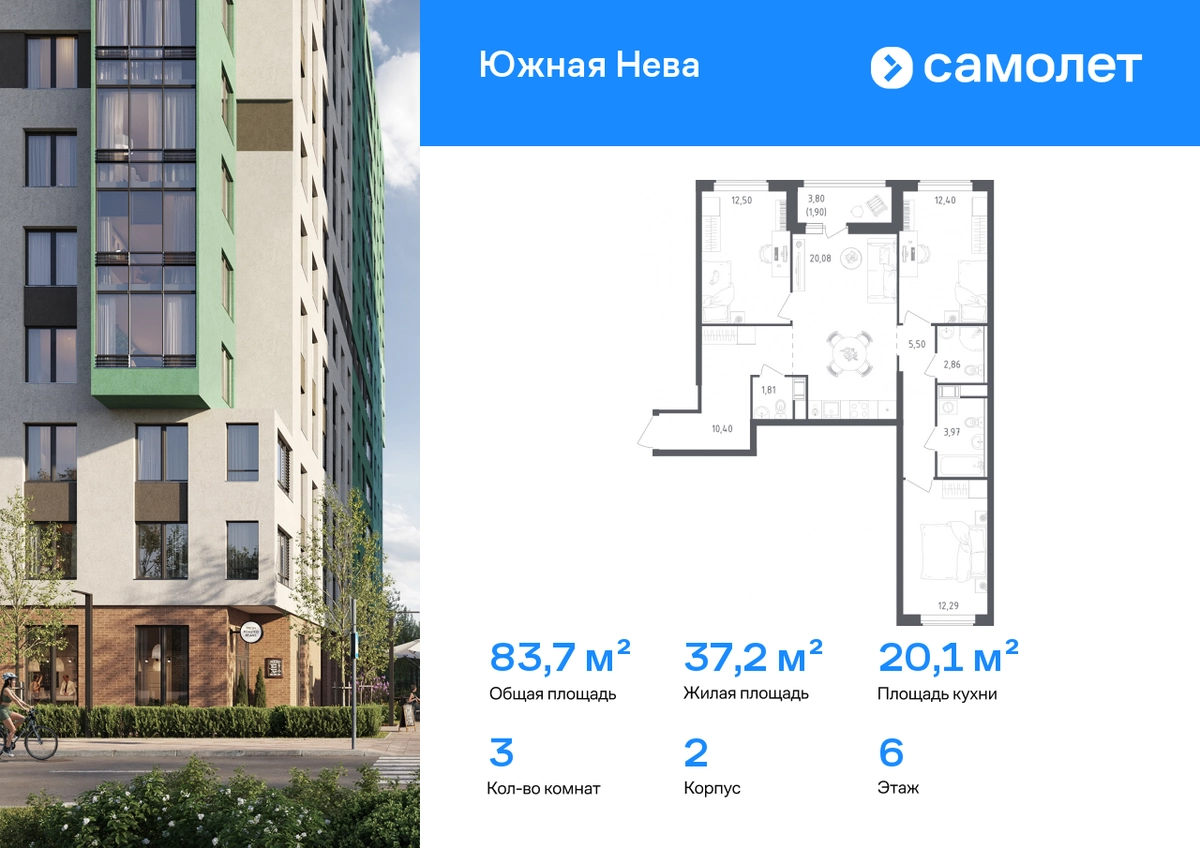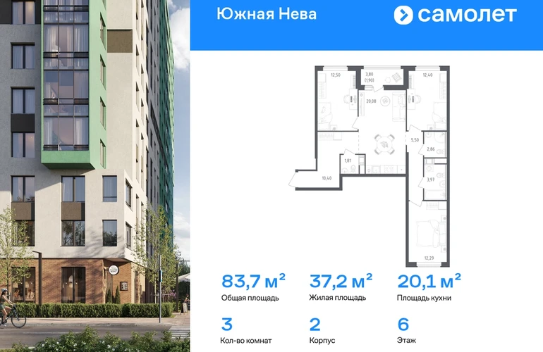 Строим кварталы для жизни с заботой о будущем. Предлагается 3-комнатная квартира комфорт-класса 83,71 кв.м в корпусе 2 на 6 этаже, в ЖК «Южная Нева» Квартира с чистовой отделкой. Доступность дополнительных опций уточняйте у застройщика. Приобрести квартиру возможно по специальным акциям от застройщика, с текущими условиями акций можно ознакомиться в блоке «Акций». Цена динамическая и может отличаться, уточняйте актуальность у застройщика. Спокойное течение Невы, монументальные арки Володарского моста и простор лесопарка создают атмосферу жилого комплекса «Южная Нева». До КАДа — всего 5 минут, до центра города — 30 минут на машине, а станция метро «Пролетарская» в 10 минутах. Для любителей природы рядом Невский лесопарк и «МЕГА Парк», где можно бегать, кататься на велосипеде или посетить веревочный парк. Для детей предусмотрены школа и 2 детских сада, а на первых этажах домов откроются салоны красоты, магазины и кафе. В шаговой доступности — фитнес-центр и торговые центры «МЕГА Дыбенко» и «Лондон Молл». Комплекс состоит из 11 монолитных домов высотой от 12 до 23 этажей с разноцветными фасадами и панорамными балконами. Двор украшают 7 мостов-навесов, а центральная аллея — собственная Нева. Здесь можно позагорать на лежаках или поиграть в шахматы, позаниматься на спортивной площадке или отвести ребенка в игровую зону на встречу с друзьями. В «Южной Неве» есть планировки с проходными кухнями-гостиными и гардеробными.#yan19-2r1814419#О застройщике