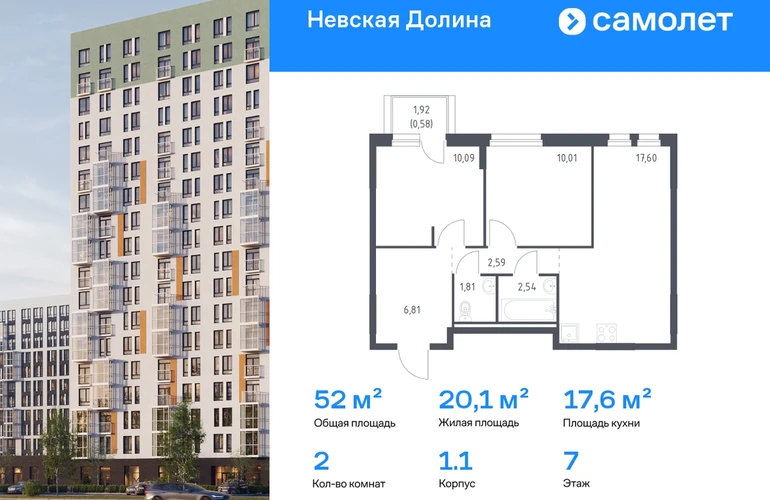 Строим кварталы для жизни с заботой о будущем. Предлагается квартира студия комфорт-класса 21,9 кв.м в корпусе 1.3 на 7 этаже, в ЖК «Невская Долина» Квартира с чистовой отделкой. Доступность дополнительных опций уточняйте у застройщика. Приобрести квартиру возможно по специальным акциям от застройщика, с текущими условиями акций можно ознакомиться в блоке «Акций». Цена динамическая и может отличаться, уточняйте актуальность у застройщика. «Невская Долина» — зеленый холст для вашей жизни с уникальными палисадниками, садами и уютными уголками для отдыха. Всего в 5 минутах на машине — КАД, рядом — Большой Обуховский мост. До центра Петербурга — 35 минут на авто, до метро «Пролетарская» — 15 минут, до аэропорта Пулково — 30 минут. Комплекс находится на правом берегу Невы, рядом с Невским лесопарком, «МЕГА Парком» и парком развлечений. Скоро во дворе комплекса построят 4 детских сада и 2 школы. Рядом уже есть магазины «Дикси», «Магнит», пункты выдачи и аптеки. На первых этажах будут кафе и минимаркеты, откроется медицинский центр и физкультурно-оздоровительный комплекс. Архитектура домов сочетает в себе современность и функциональность — фасады украшены большими окнами, лоджиями, обычными и французскими балконами. В «Невской Долине» есть сады плодовых культур, игровые и спортивные зоны, 11 многоуровневых паркингов.#yan19-2r1822648#О застройщике
