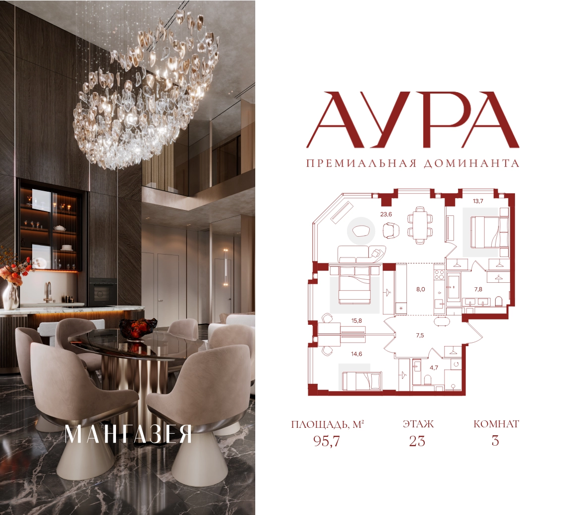 АУРА – новая премиальная доминанта Москвы в 10 минутах от Садового кольца. Проект состоит из 42-этажной Бронзовой башни и 41-этажной Серебряной. Рядом – набережная Москвы-реки, Даниловский рынок, музеи и галереи, престижные школы и вузы.