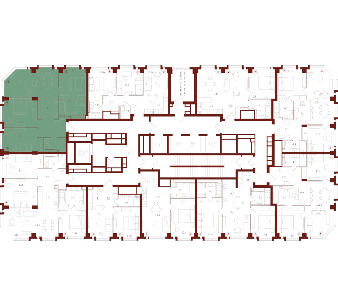 Только для резидентов: • Бьюти-комната • Коворкинг, переговорные и акустические кабинеты • Детская игровая комната • Спортзал и студия для тренировок • Просторные колясочные • Сервисная комната • Лапомойки для домашних питомцев