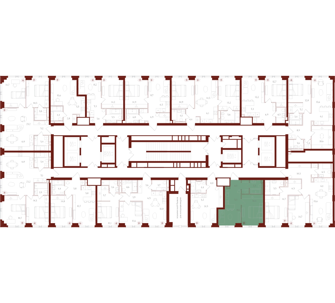Только для резидентов: • Бьюти-комната • Коворкинг, переговорные и акустические кабинеты • Детская игровая комната • Спортзал и студия для тренировок • Просторные колясочные • Сервисная комната • Лапомойки для домашних питомцев