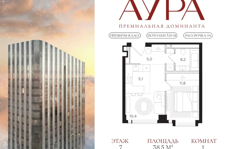 АУРА – новая премиальная доминанта Москвы в 10 минутах от Садового кольца. Проект состоит из 42-этажной Бронзовой башни и 41-этажной Серебряной. Рядом – набережная Москвы-реки, Даниловский рынок, музеи и галереи, престижные школы и вузы.